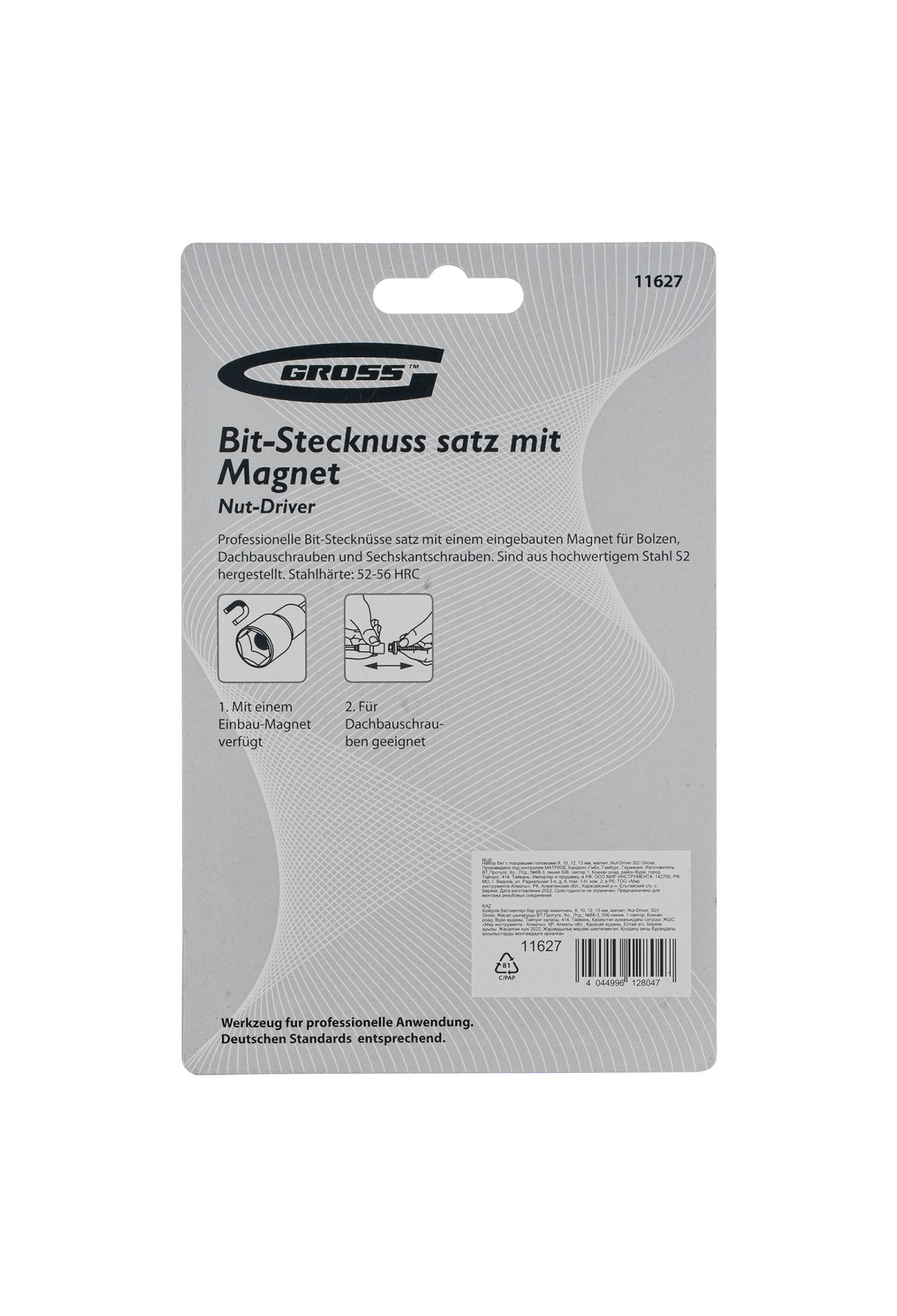 Технические характеристики Набор бит с торцевыми головками 8, 10,12, 13 мм, магнит. Nut-Driver, S2 Gross