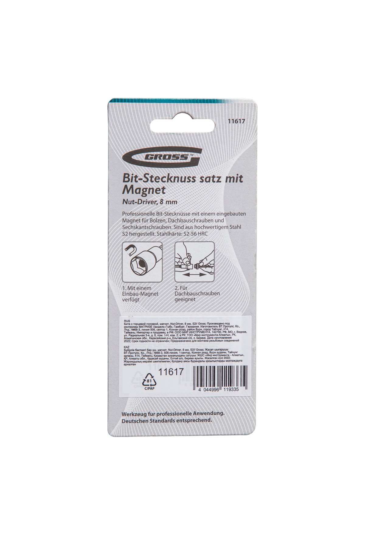 Бита с торцевой головкой, магнит. Nut-Driver, 8 мм, S2 Gross