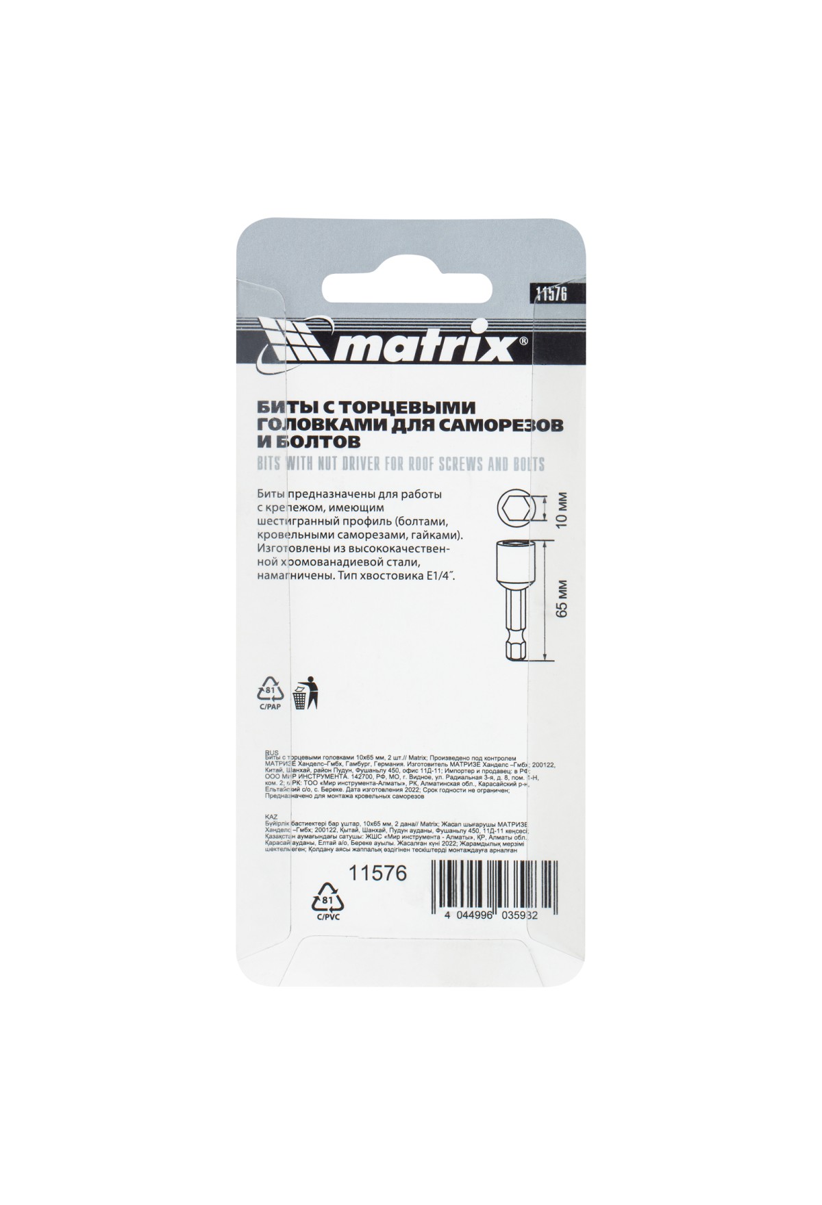 Тэги: Биты с торцевыми головками 10 мм, 65 мм, 2 шт. Matrix, VR6-11576, MATRIX, VR6, VR6-Биты, VR6-Биты с торцевыми головками, VR6-Слесарный инструмент
