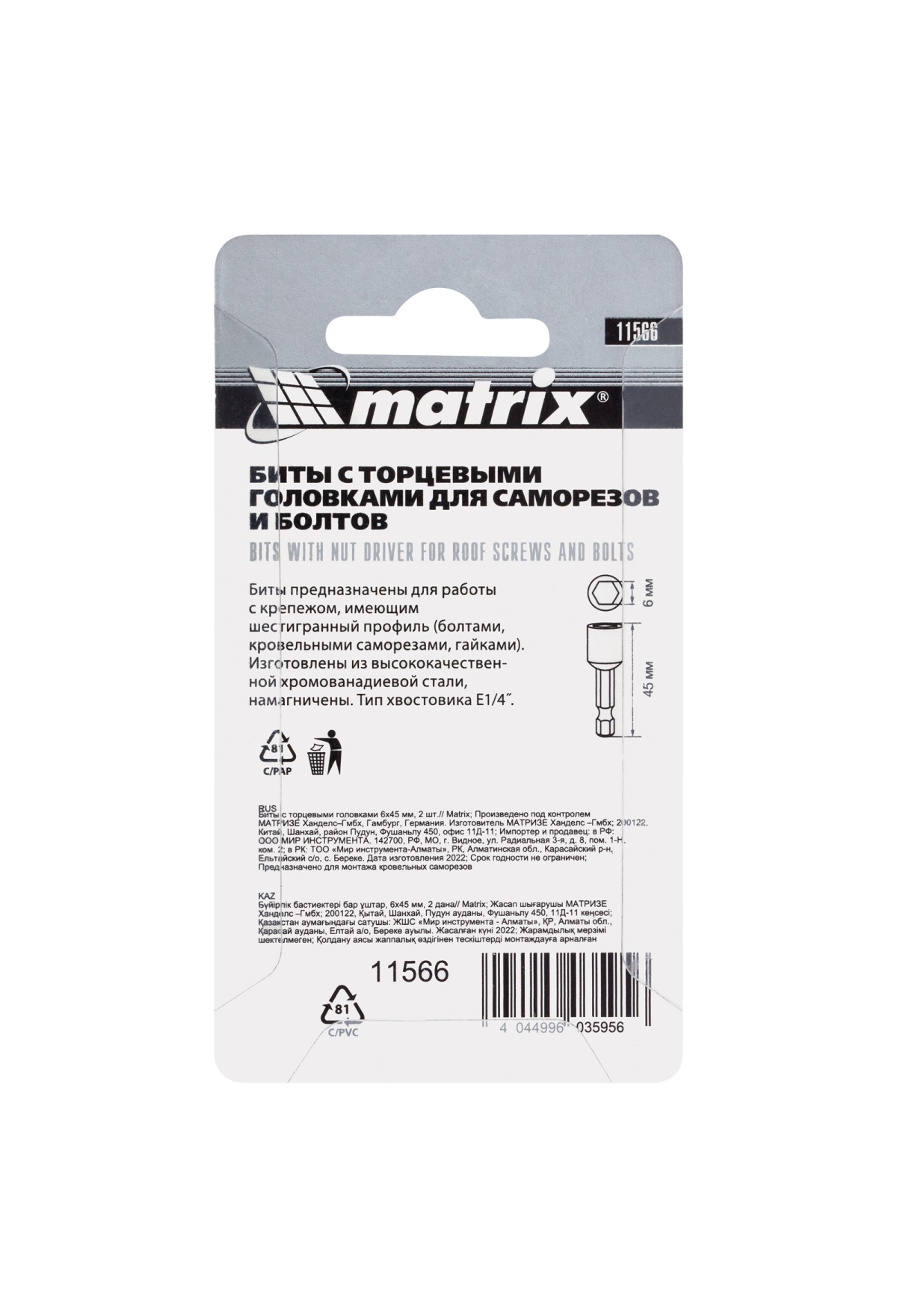 Тэги: Биты с торцевыми головками 6 мм, 45 мм, 2 шт. Matrix, VR6-11566, MATRIX, VR6, VR6-Биты, VR6-Биты с торцевыми головками, VR6-Слесарный инструмент