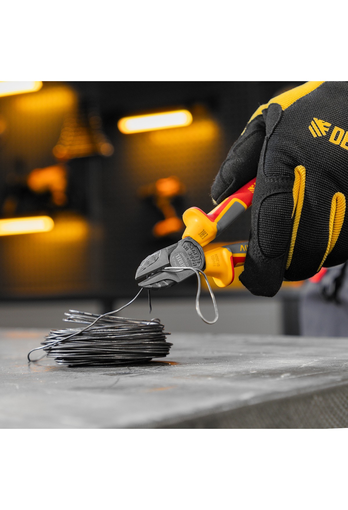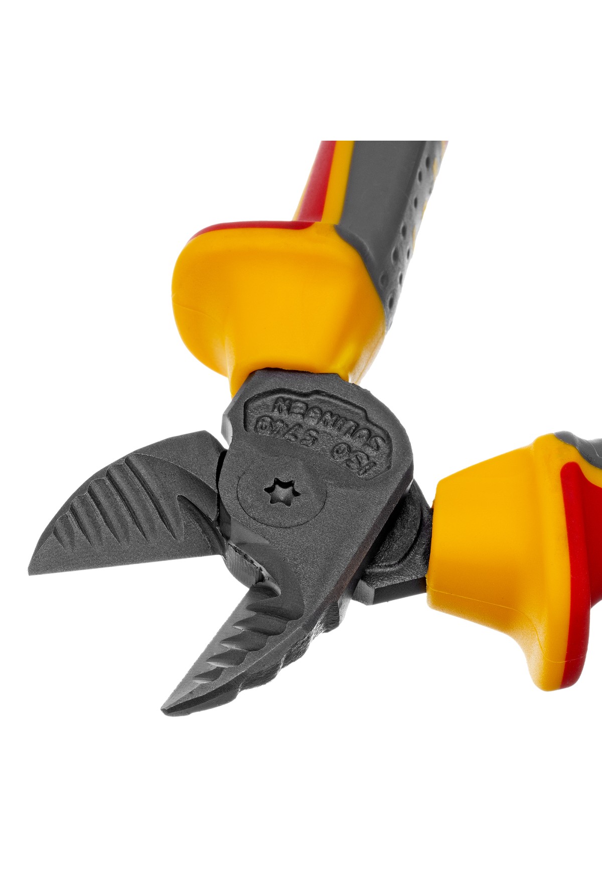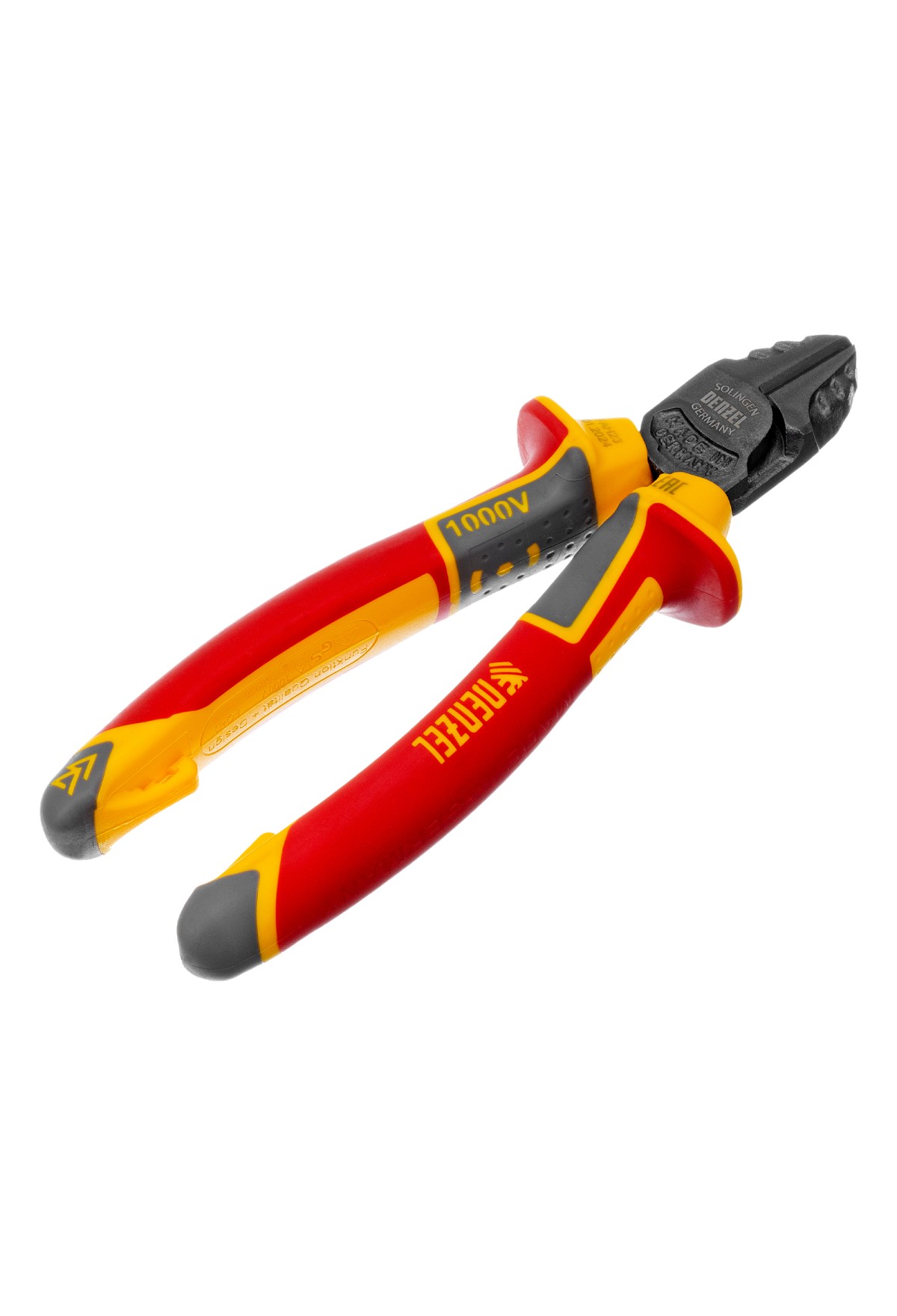 Бокорезы Denzel 17788 длиной 160 мм, с трехкомпонентными диэлектрическими рукоятками, рассчитанными на напряжение до 1000 В, предназначены для разрезания кабелей, проводов, проволоки, стержней из пластмассы и металла. Максимальный диаметр перерезаемой мягкой проволоки (алюминиевой, медной, с пределом прочности 220 Н/мм2) составляет 6 мм, проволоки средней жесткости и гвоздей (750 Н/мм2) — 3,5 мм, жесткой (1800 Н/мм2) — 2 мм. Бокорезы подходят для проведения электромонтажных работ. Инструмент эффективно справляется с поставленными задачами благодаря шарниру, смещенному к режущим кромкам и увеличивающему усилие реза на 20%.