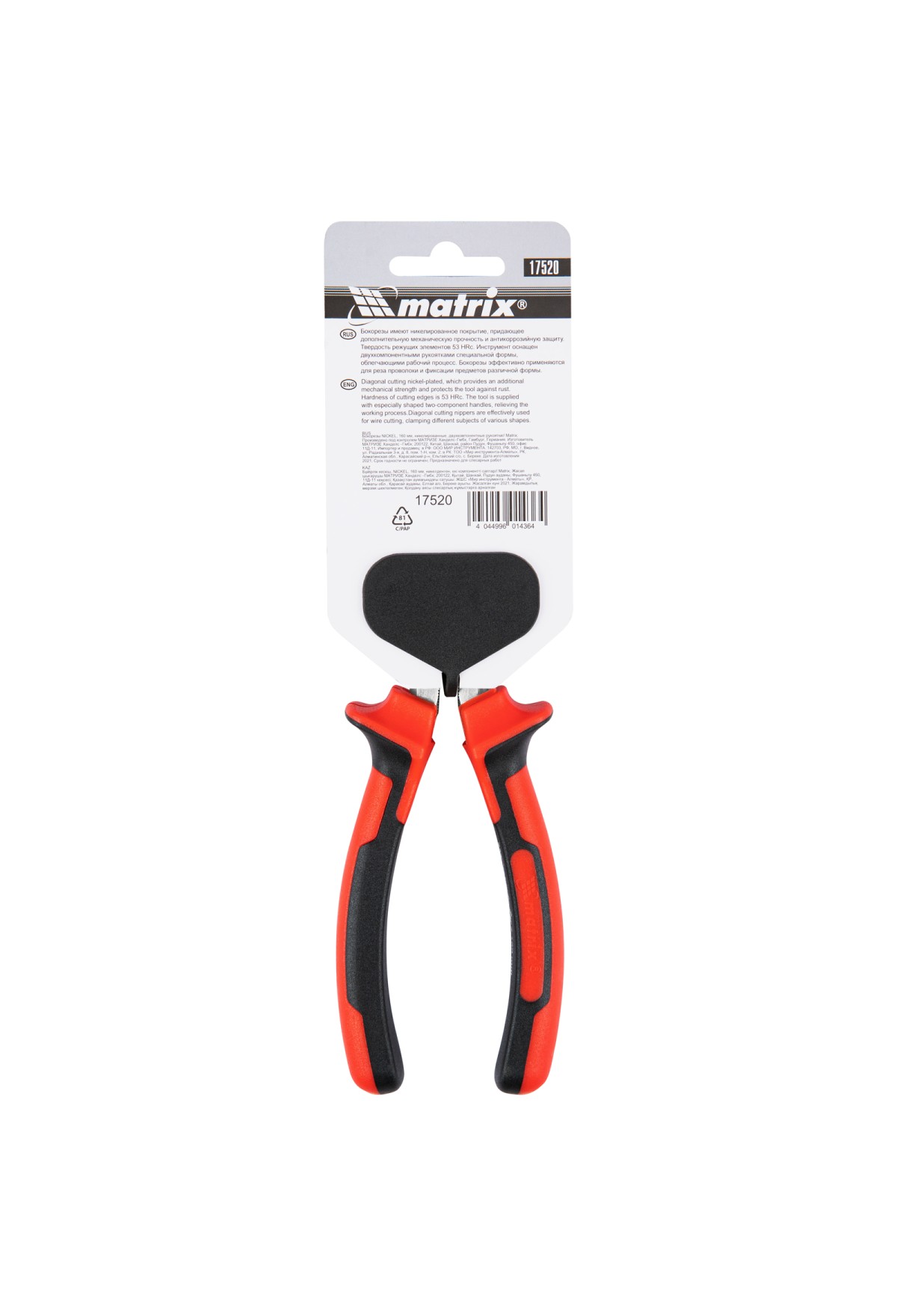 Технические характеристики Бокорезы Nickel, 160 мм, никелированные, двухкомпонентные рукоятки Matrix