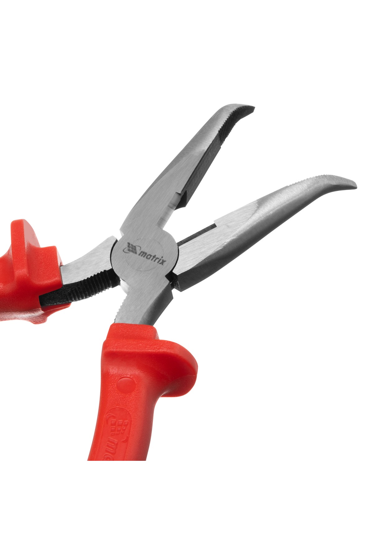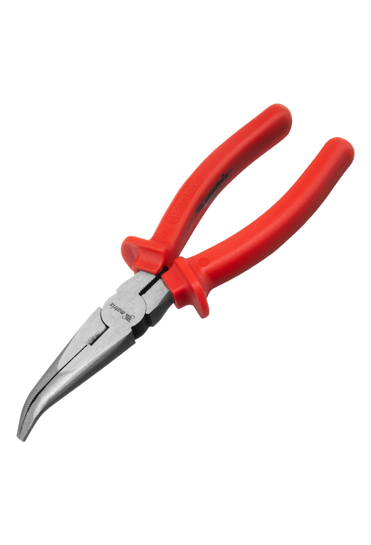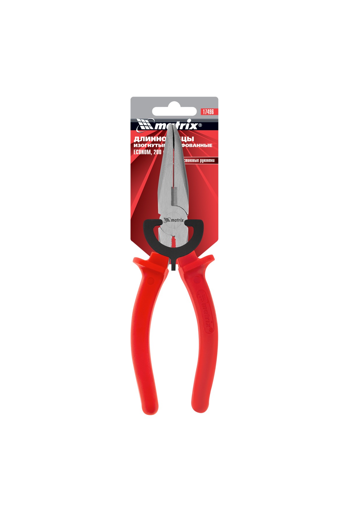Длинногубцы изогнутые Econom, 200 мм, шлифованные, пластмассовые рукоятки Matrix