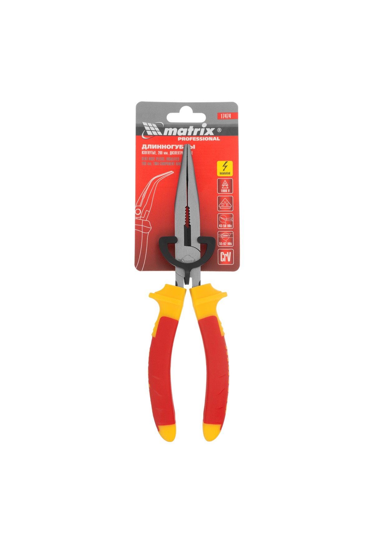 Технические характеристики Длинногубцы изогнутые Insulated, 200 мм, двухкомпонентные рукоятки Matrix Professional