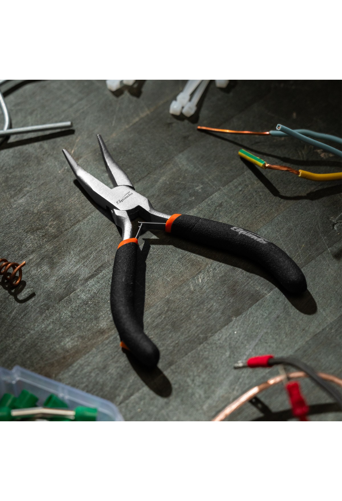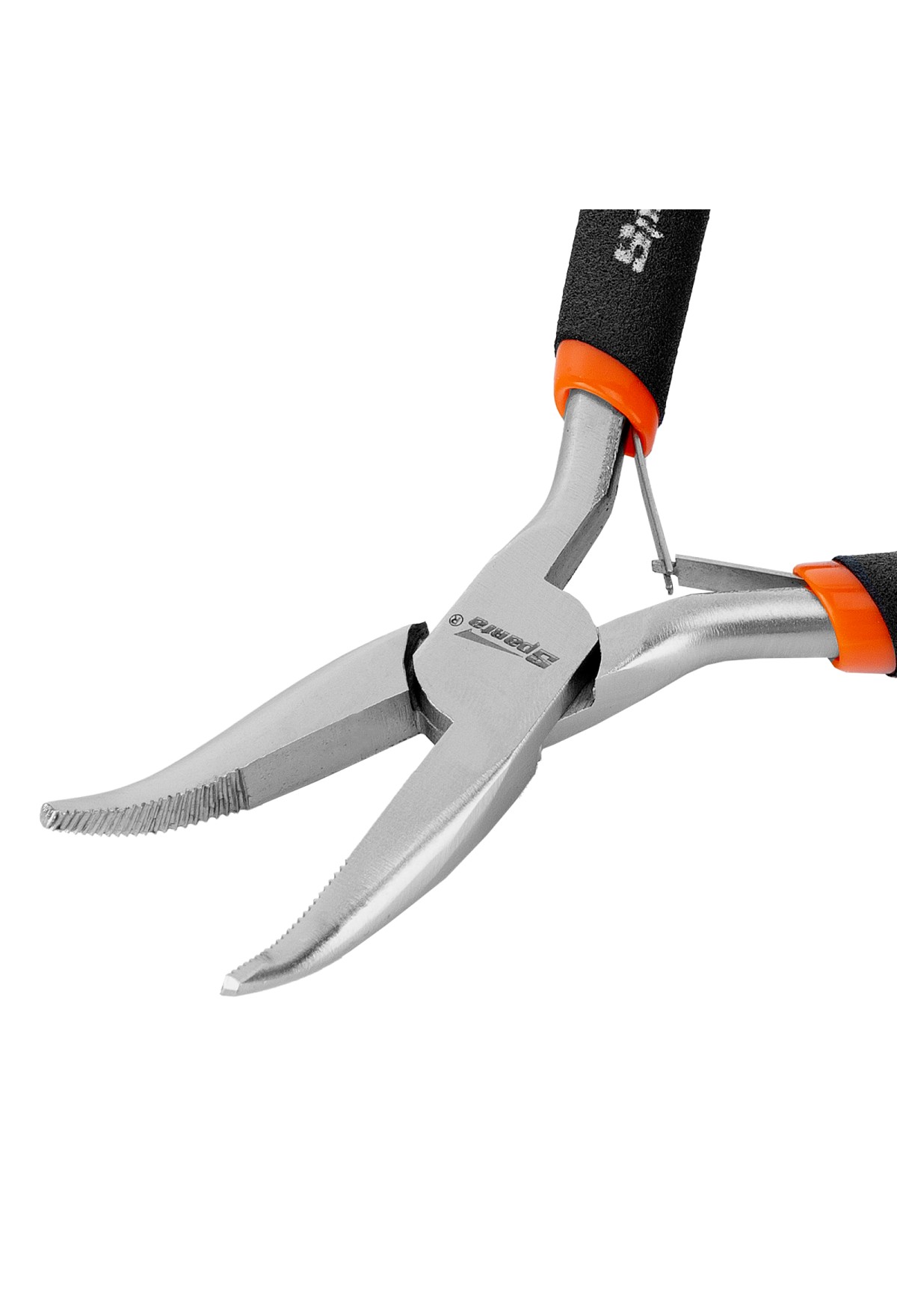 Длинногубцы изогнутые Mini, 130 мм, никелированные, авторазжим Sparta