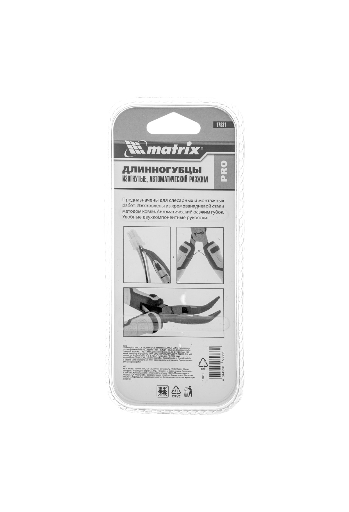 Технические характеристики Длинногубцы Mini, 125 мм, изогнутые, авторазжим, Pro Matrix