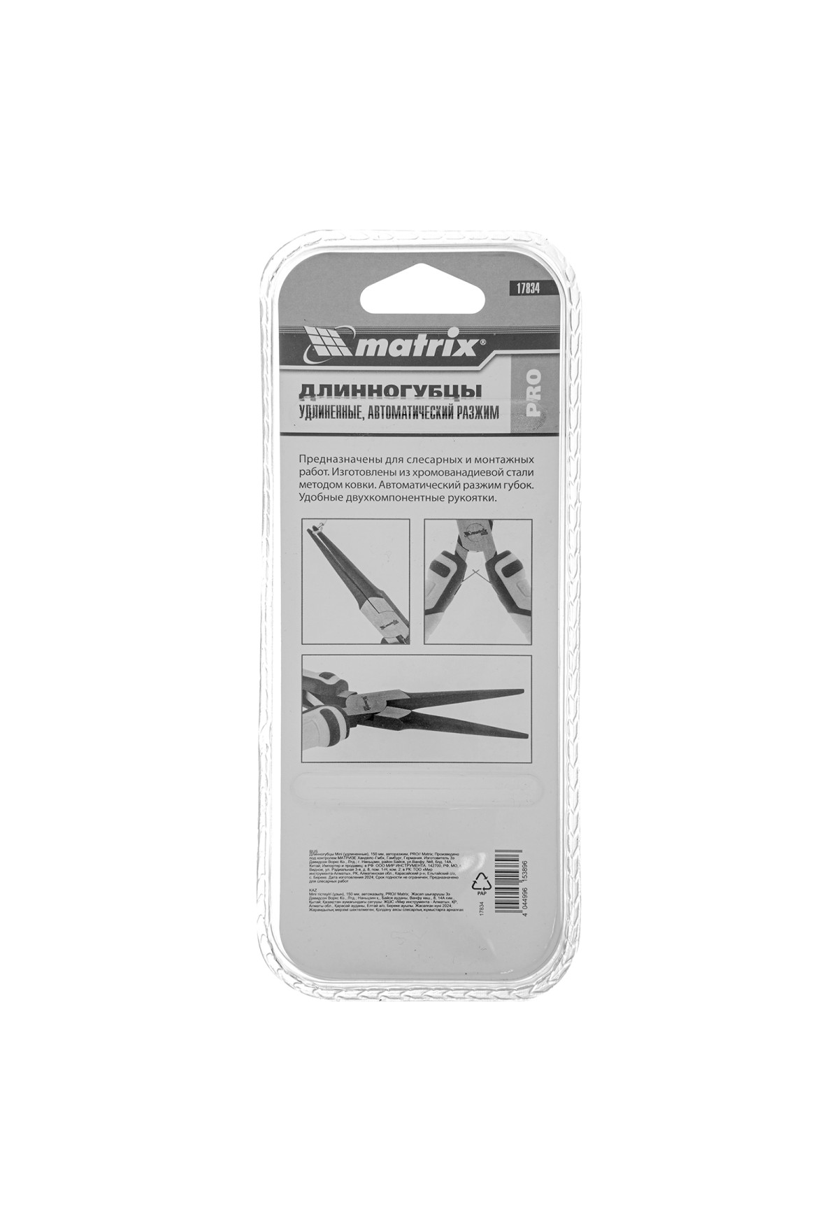 Длинногубцы Mini удлиненные, 150 мм, авторазжим, Pro Matrix