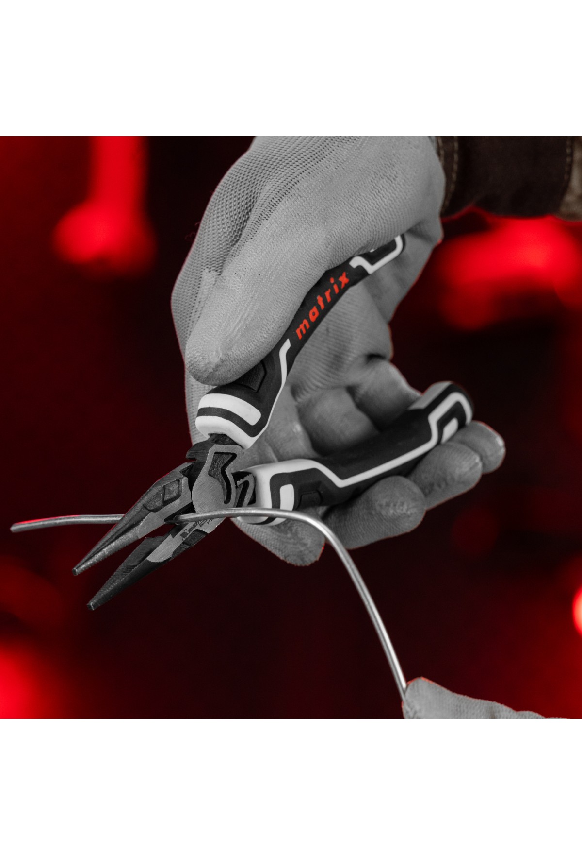 Прямые длинногубцы Matrix PRO 17197 с усиленной системой, длиной 165 мм, станут незаменимым помощником профессиональным мастерам. Пригодятся при проведении широкого спектра слесарных, монтажных и ремонтных работ. За счет удлиненных тонких губок инструмент легко проникает в труднодоступные места, позволяет захватить и удержать мелкие детали, перекусить прутки, проволоку, провод и т.д.