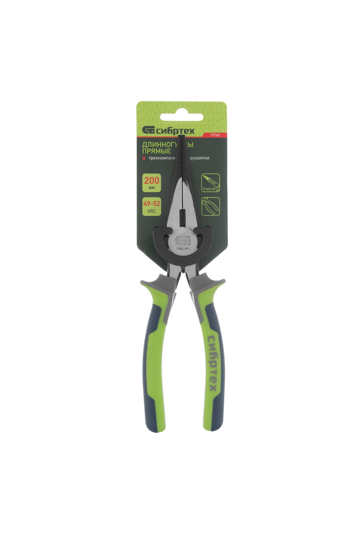 • Длинногубцы прямые 200 мм, фосфатирование, трехкомпонентные рукоятки Сибртех