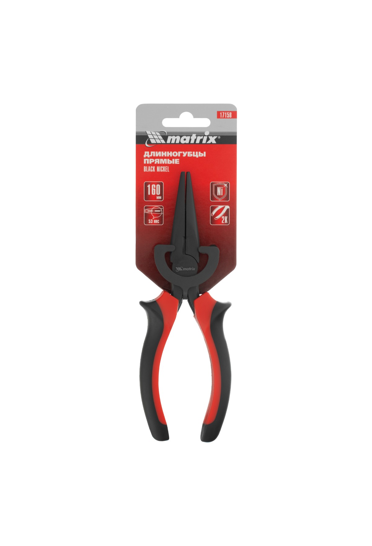 Длинногубцы прямые Black Nickel, 160 мм, двухкомпонентные рукоятки Matrix