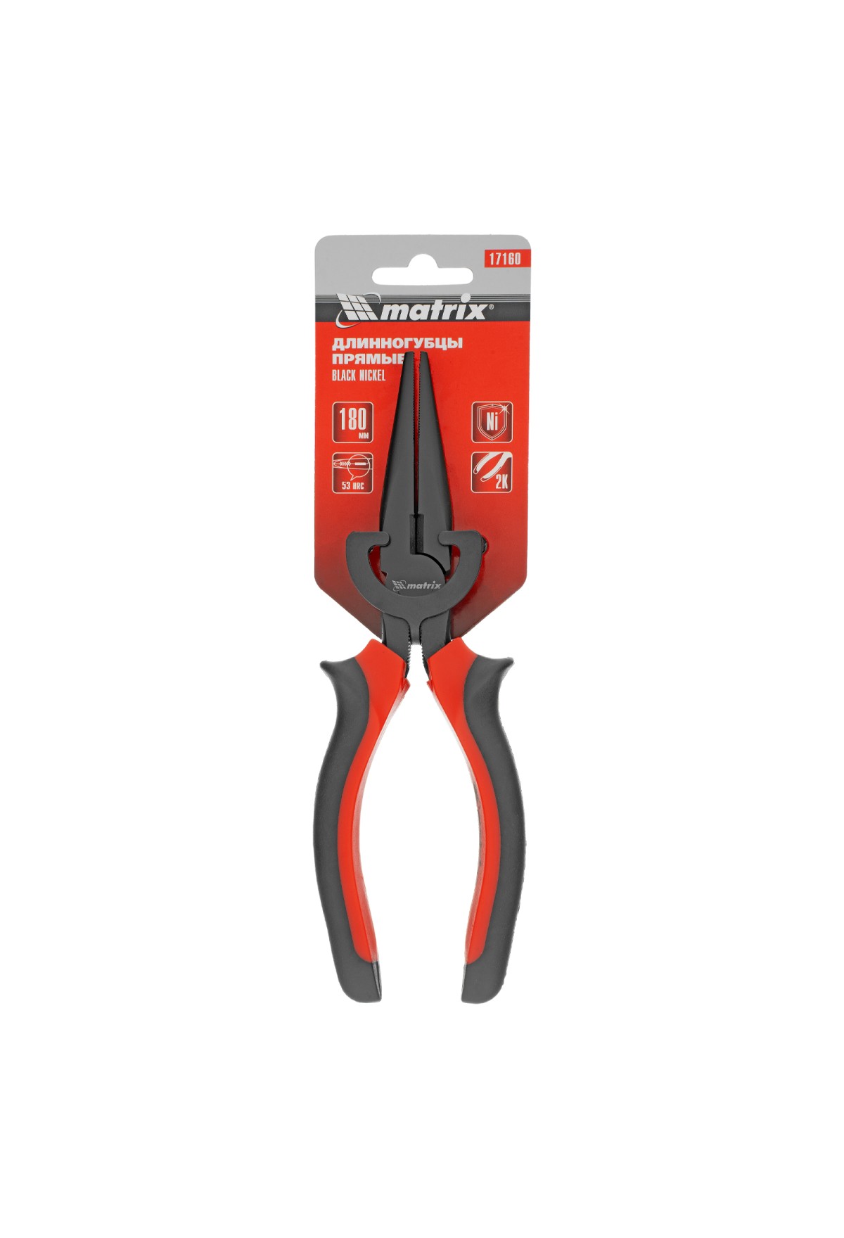 Длинногубцы прямые Black Nickel, 180 мм, двухкомпонентные рукоятки Matrix