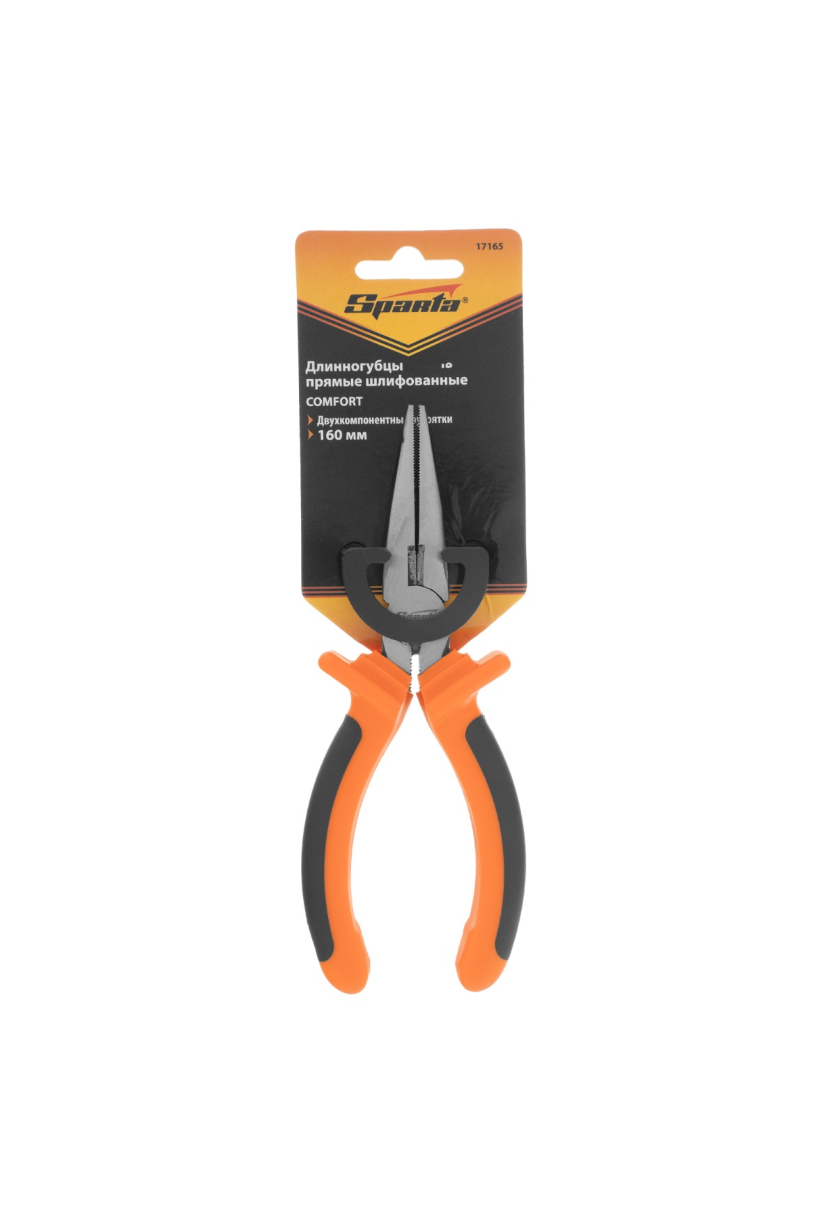 Длинногубцы прямые Comfort, 160 мм ,шлифованные, двухкомпонентные рукоятки Sparta