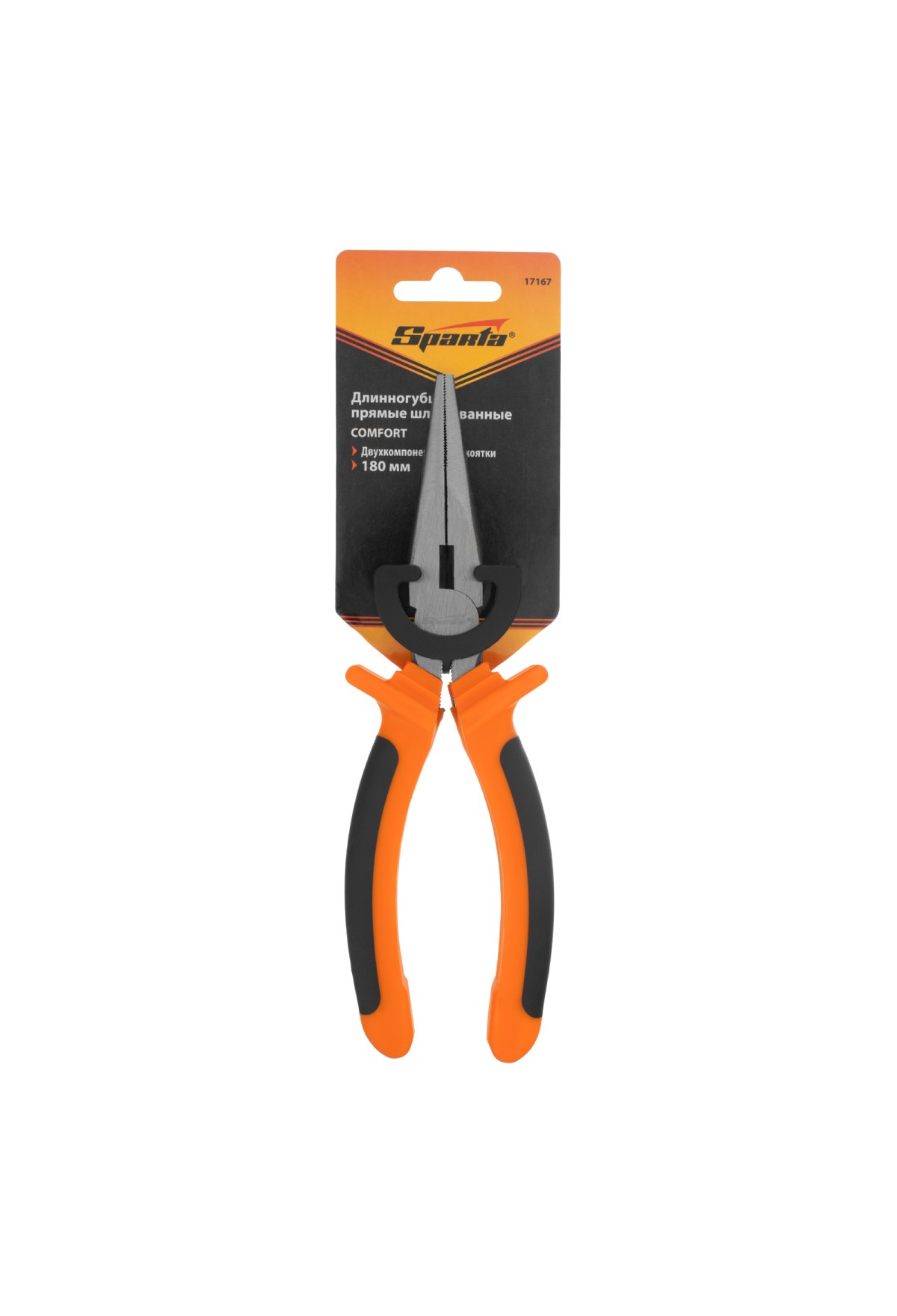 Длинногубцы прямые Comfort, 180 мм, шлифованные, двухкомпонентные рукоятки Sparta