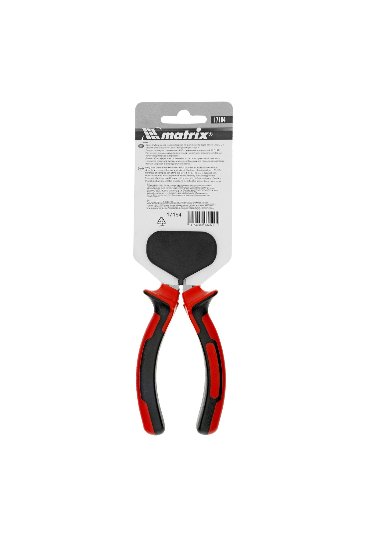 Технические характеристики Длинногубцы прямые Nickel, 160 мм, никелированные, двухкомпонентные рукоятки Matrix