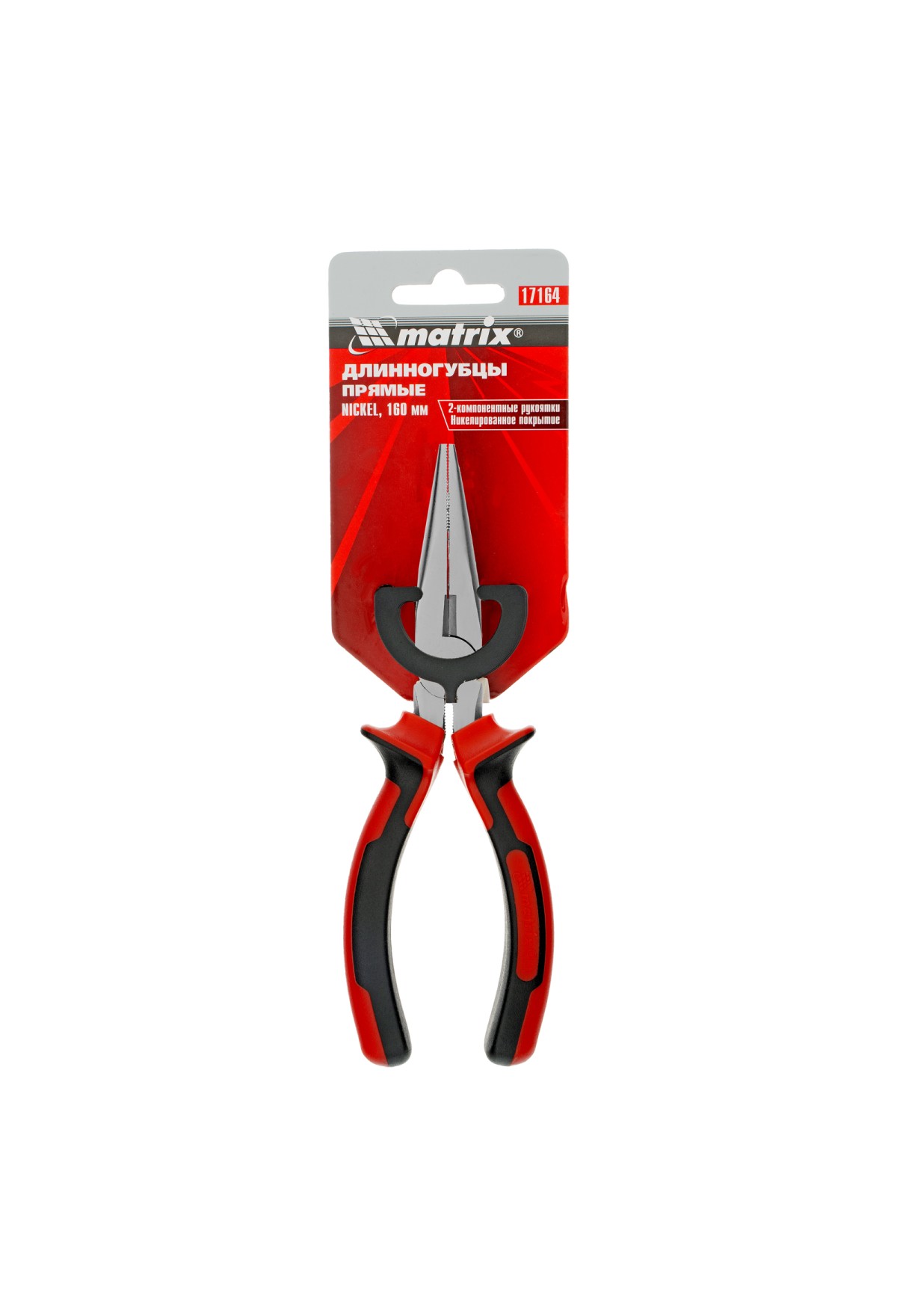 Длинногубцы прямые Nickel, 160 мм, никелированные, двухкомпонентные рукоятки Matrix