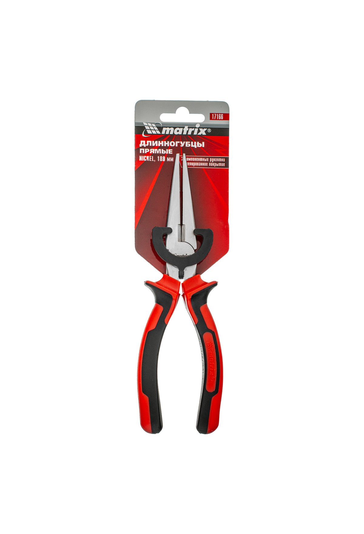 Длинногубцы прямые Nickel, 180 мм, никелированные, двухкомпонентные рукоятки Matrix