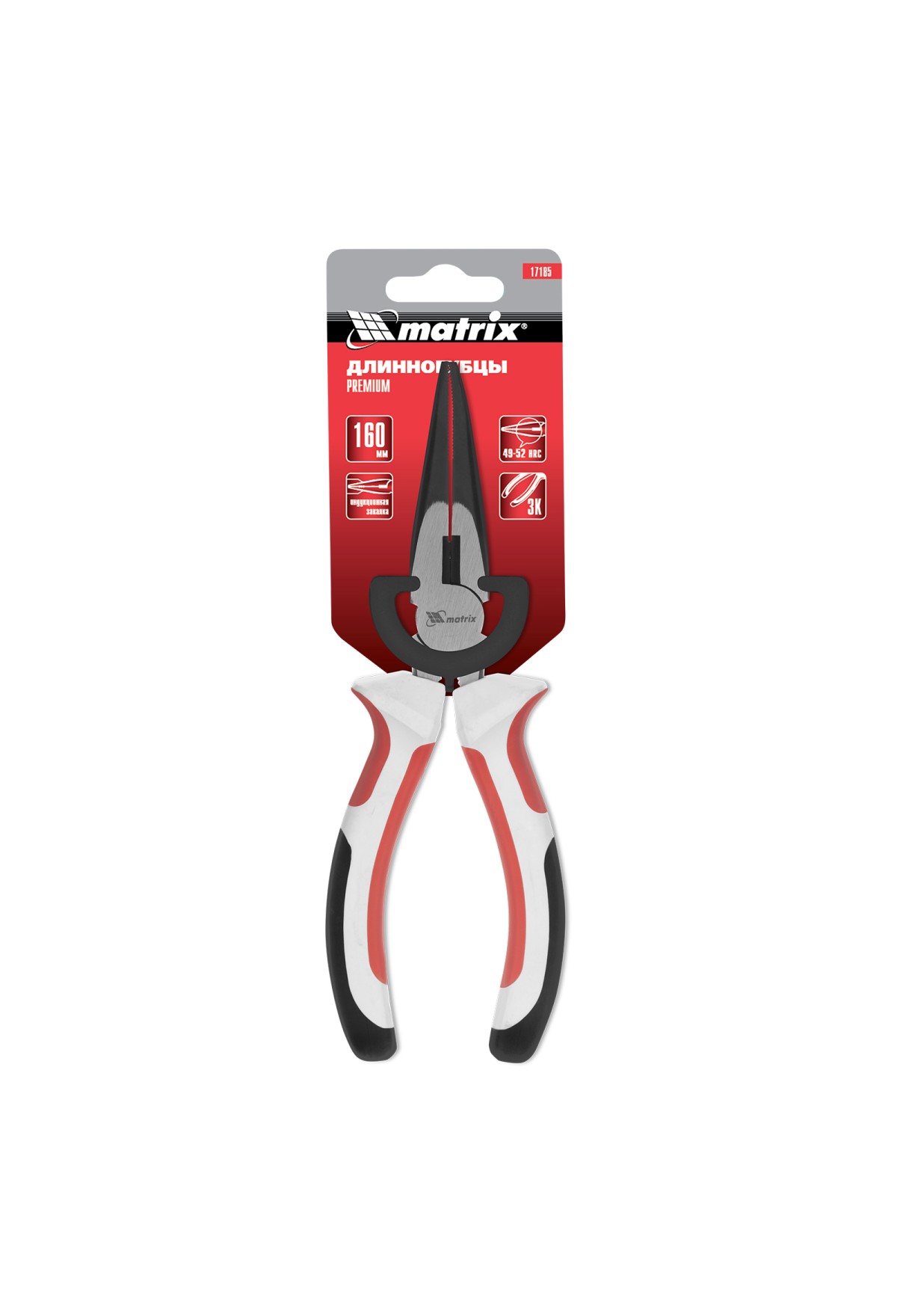 Длинногубцы прямые Premium, 160 мм, трехкомпонентные рукоятки Matrix