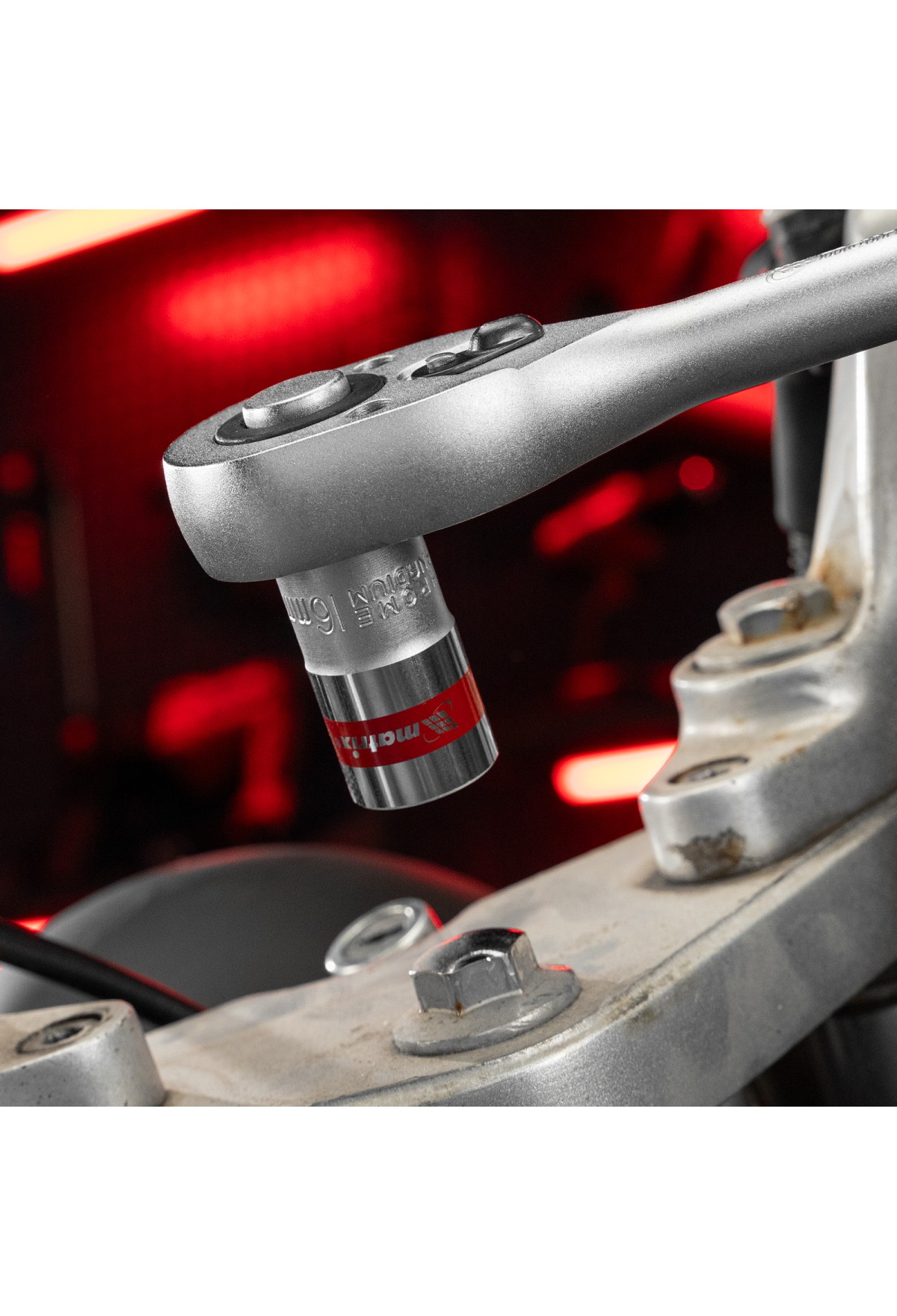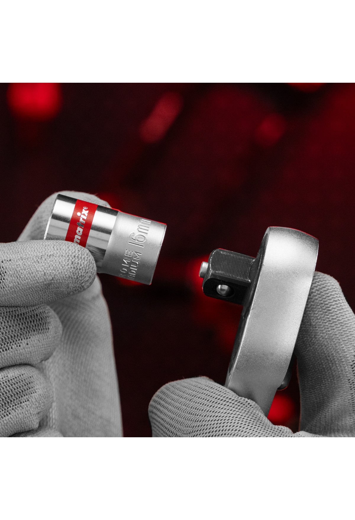 - Быстрый поиск насадки среди других инструментов — торцевая головка маркирована красной полосой, на корпус нанесено обозначение типоразмера.