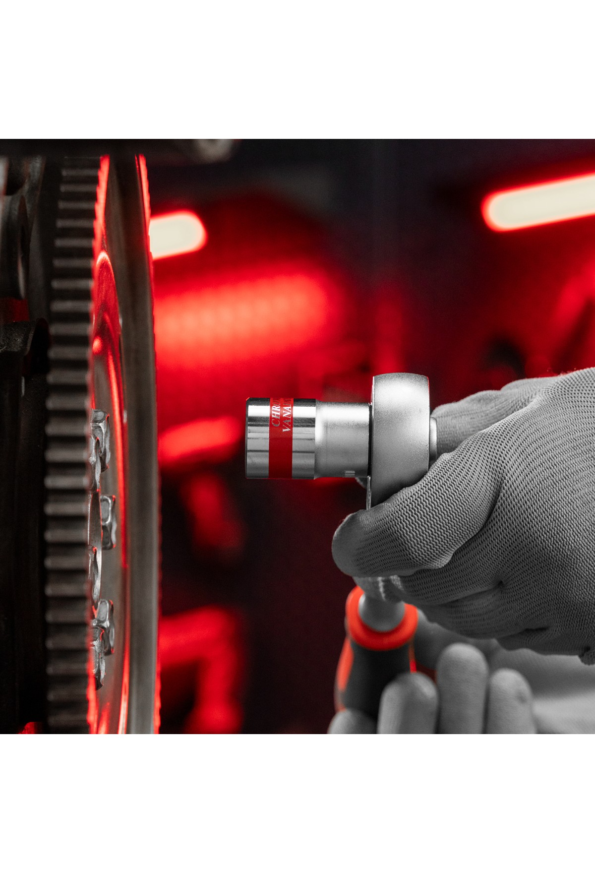- Быстрый поиск среди других насадок — торцевая головка маркирована красной полосой, на корпусе указан типоразмер.