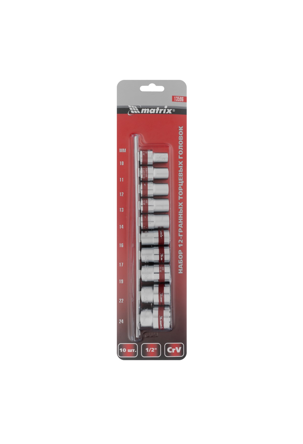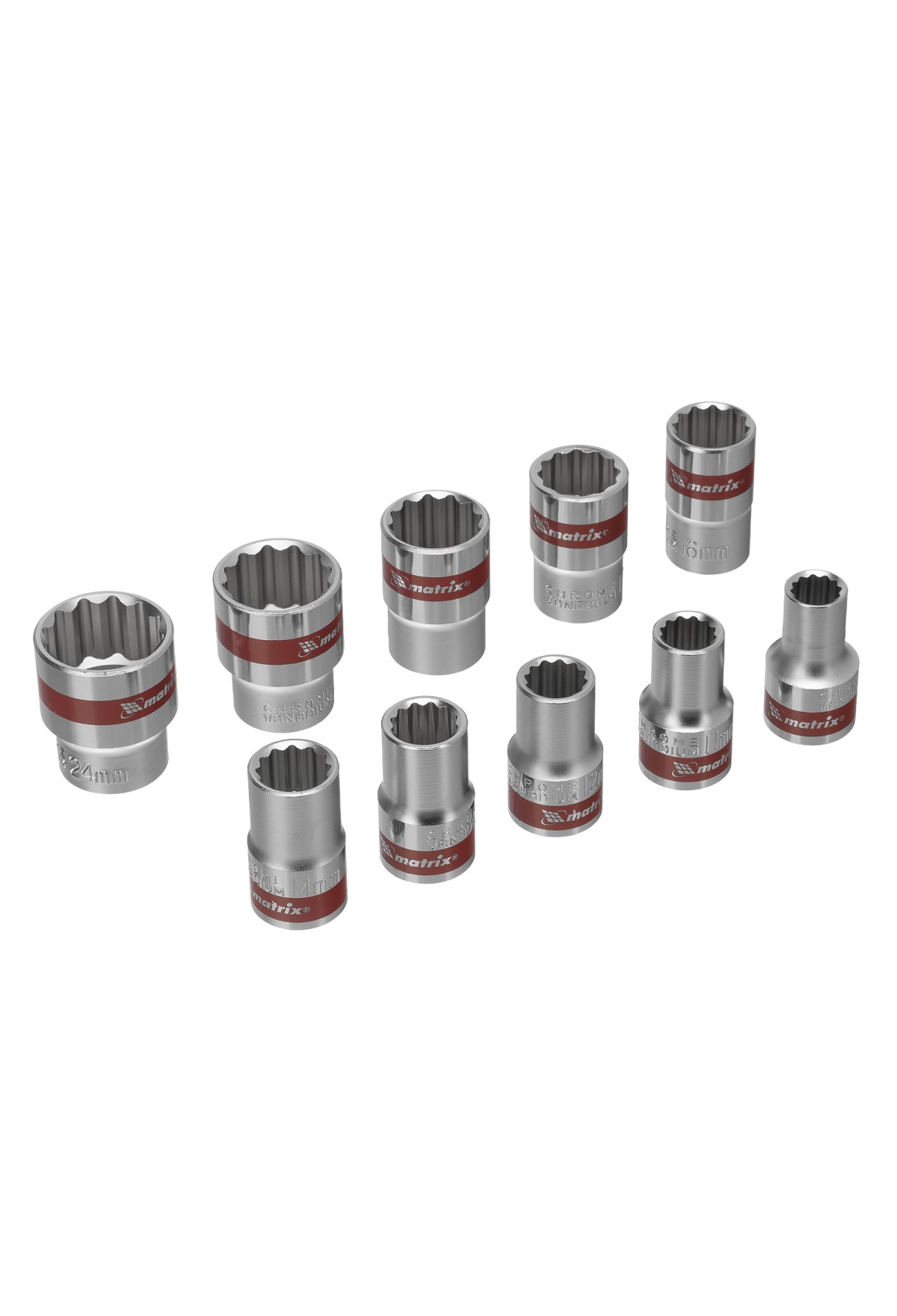 Набор торцевых головок, 1/2", 12 гранные, CrV, 10-24мм, 10 штук Matrix