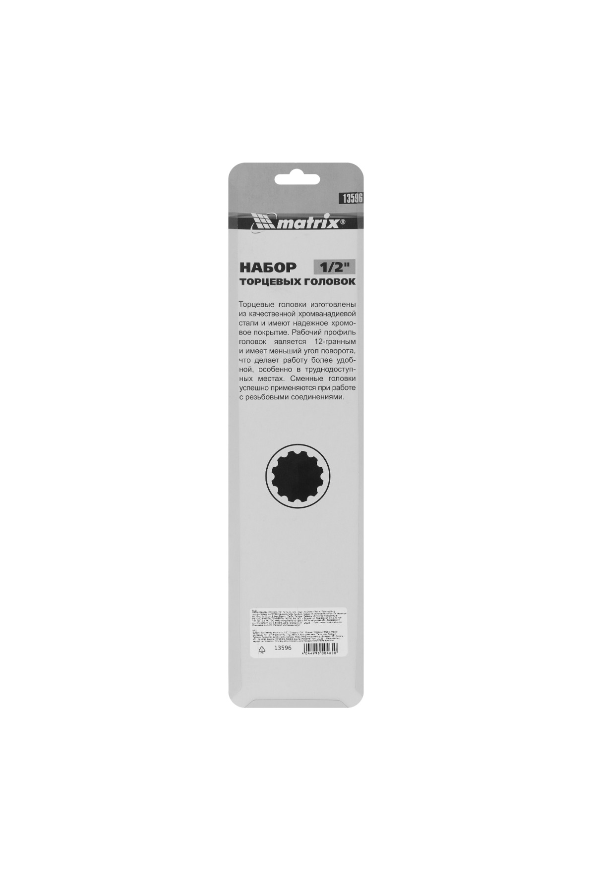 Технические характеристики Набор торцевых головок, 1/2", 12 гранные, CrV, 10-24мм, 10 штук Matrix