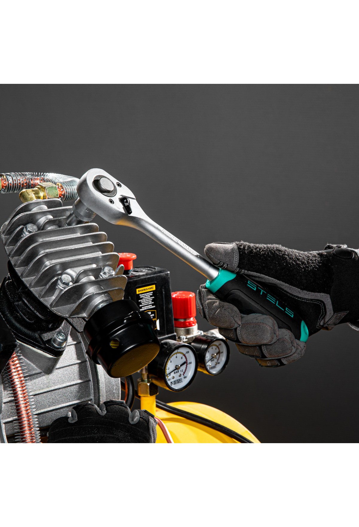 - Высокий ресурс — корпус трещотки и головок изготовлен из хромованадиевой стали.