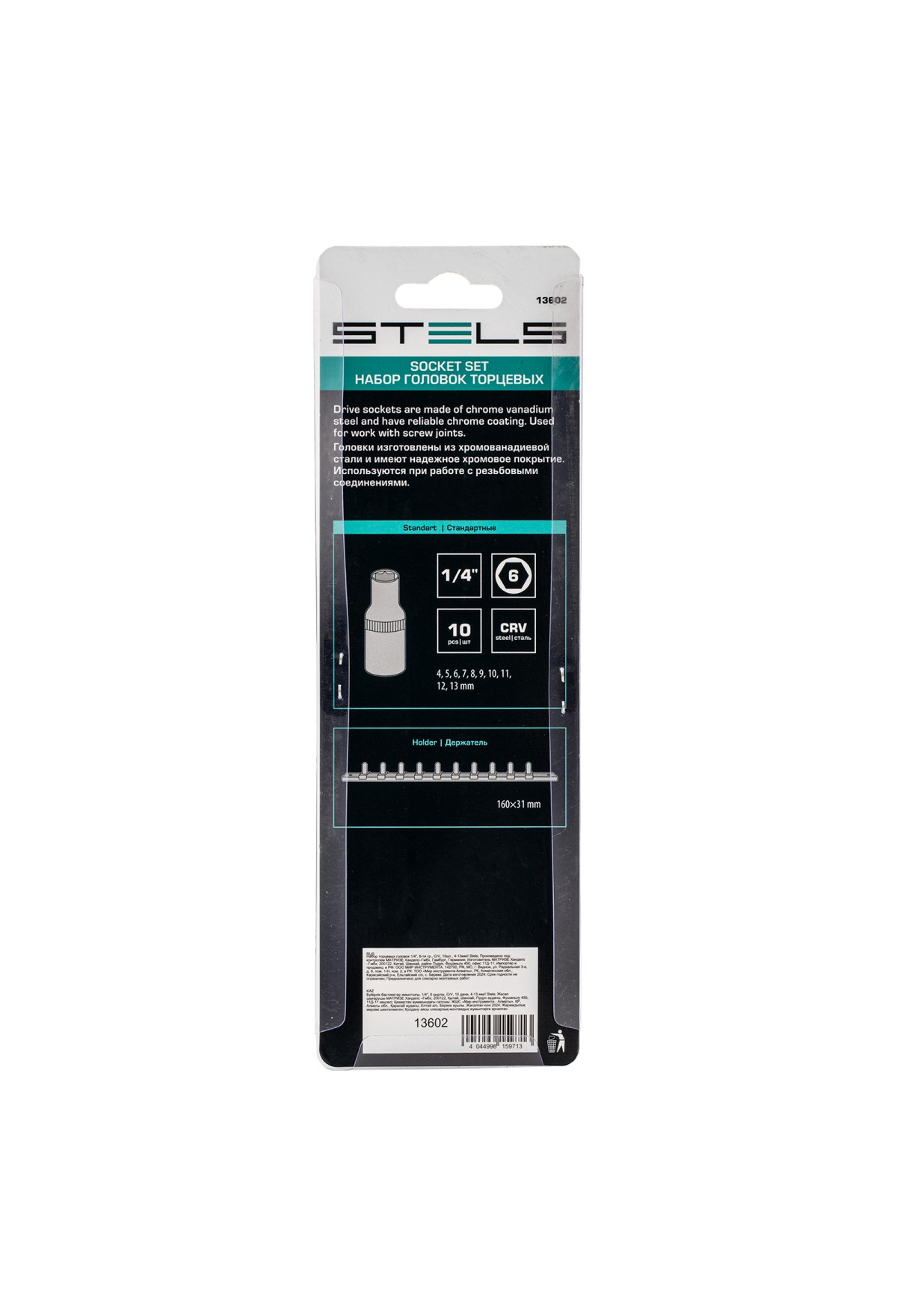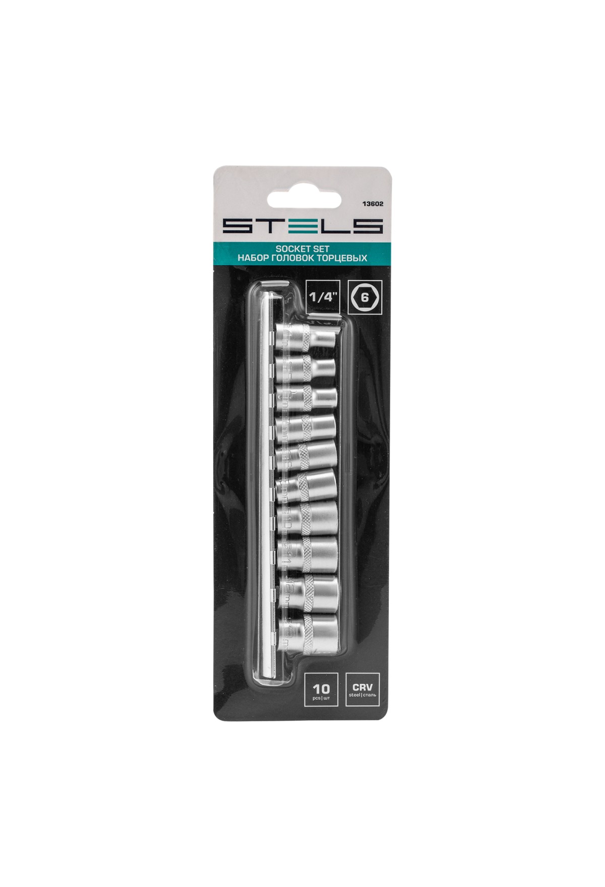 Набор торцевых головок, 1/4, шестигранные, CrV, 10 шт, 4-13 мм Stels