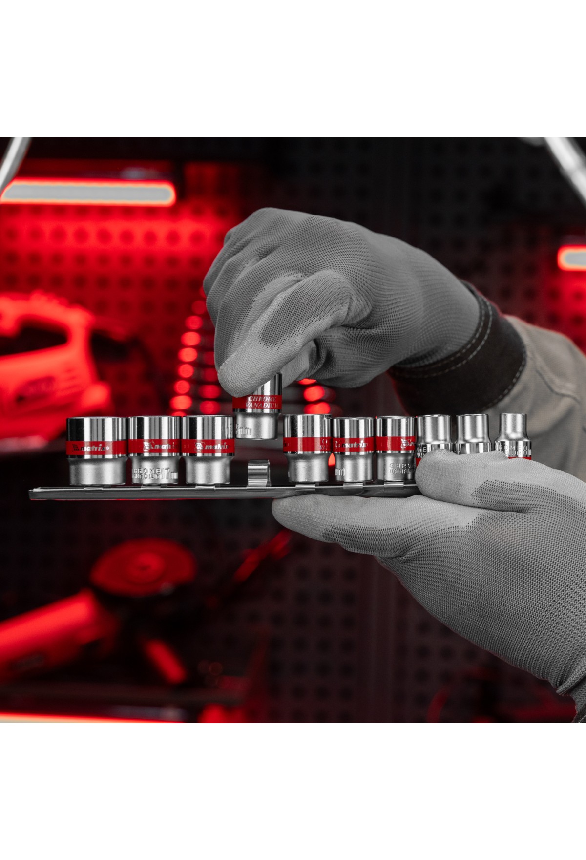 • Быстрый поиск нужной торцевой головки — на корпусах насадок имеются красные полоски и маркировка с обозначением размера.