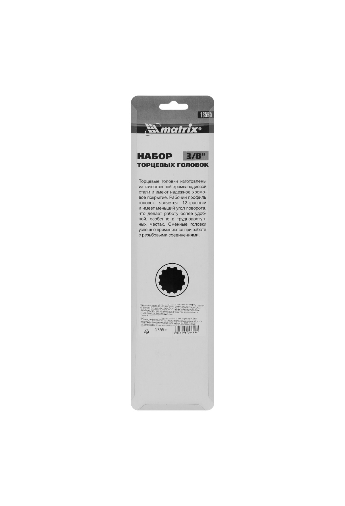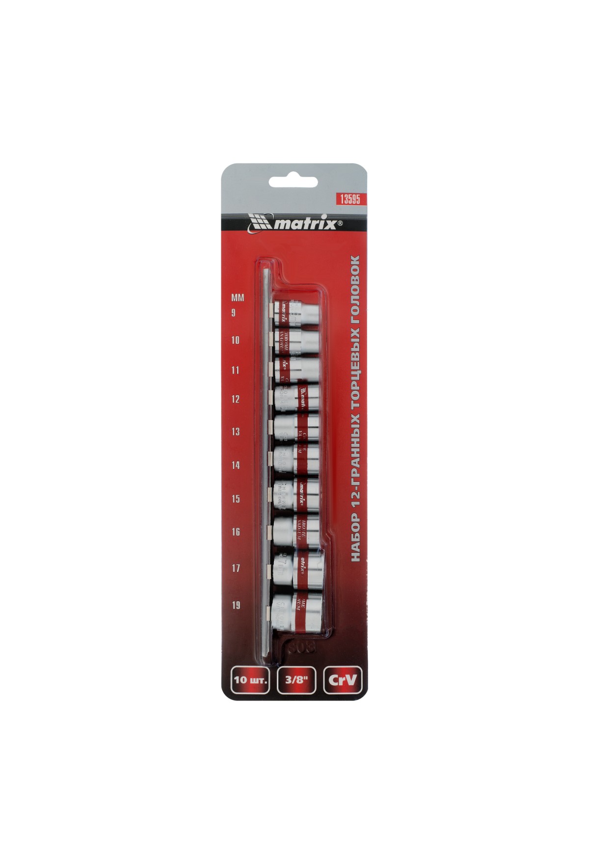 Технические характеристики Набор торцевых головок, 3/8", 12 гранные, CrV, 9-19мм, 10 штук Matrix