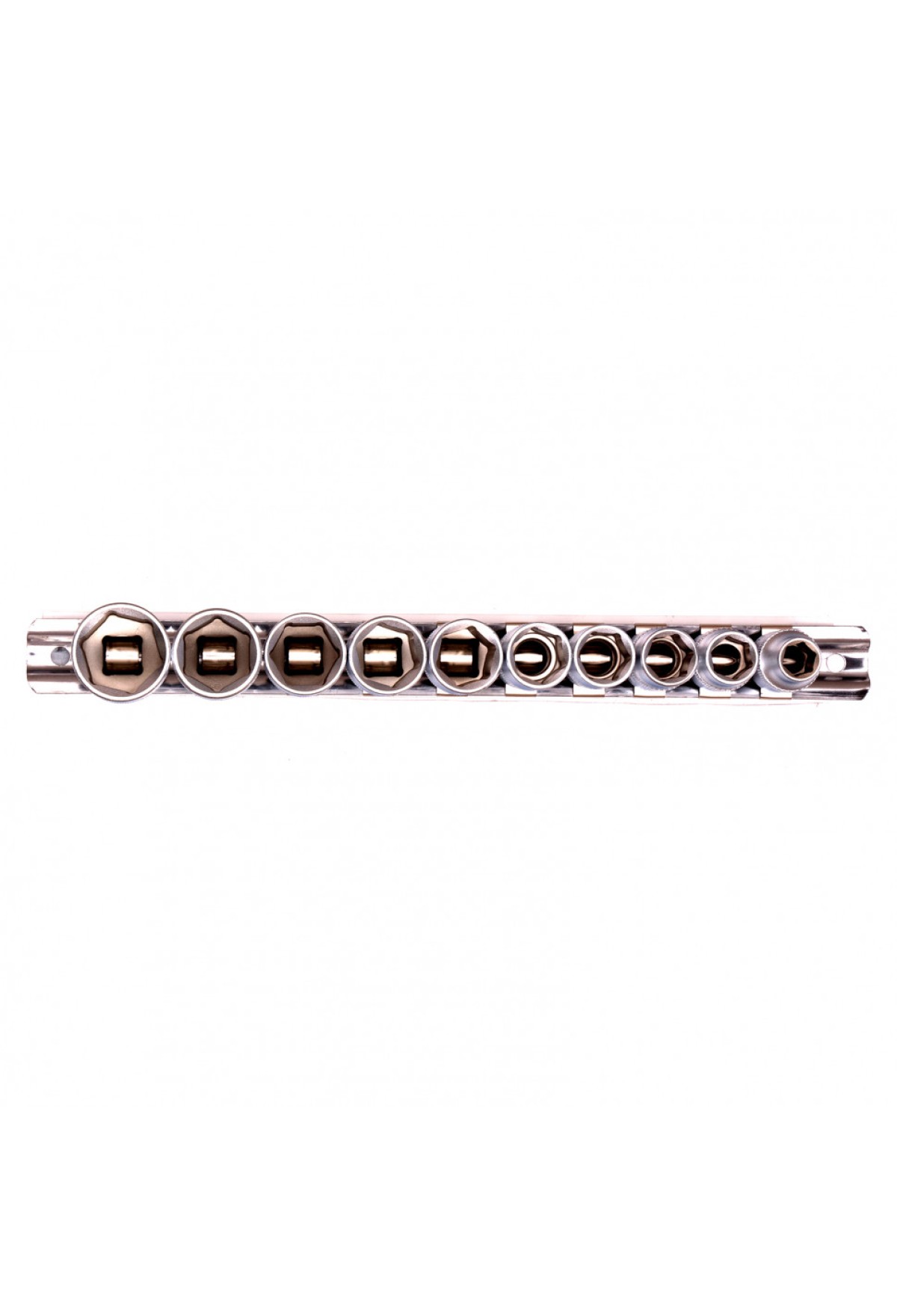 Комплектация Головка торцевая, 8 мм - 1 штГоловка торцевая, 10 мм - 1 штГоловка торцевая, 11 мм - 1 штГоловка торцевая, 12 мм - 1 штГоловка торцевая, 13 мм - 1 штГоловка торцевая, 14 мм - 1 штГоловка торцевая, 15 мм - 1 штГоловка торцевая, 16 мм - 1 штГоловка торцевая, 17 мм - 1 штГоловка торцевая, 19 мм - 1 штМеталлическая плашка-держатель - 1 шт
