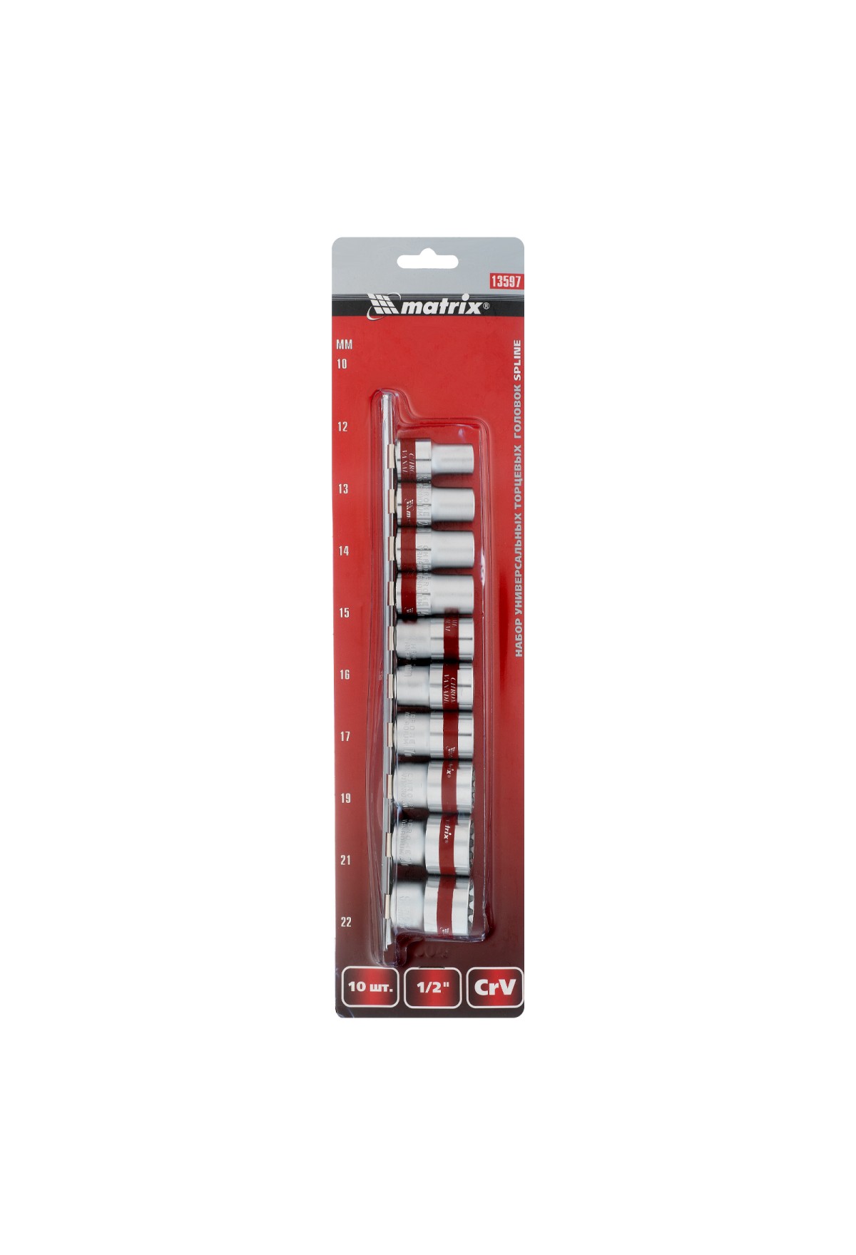 Набор универсальных торцевых головок 1/2", Spline, CrV, 10-22мм, 10 штук Matrix