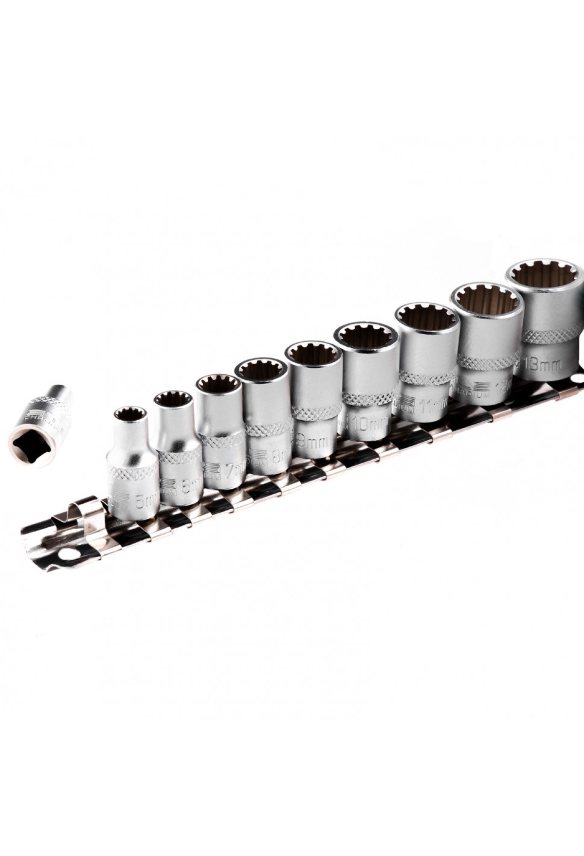 Набор универсальных торцевых головок, 1/4, SpLine, CrV, 10 шт, 4-13 мм Stels
