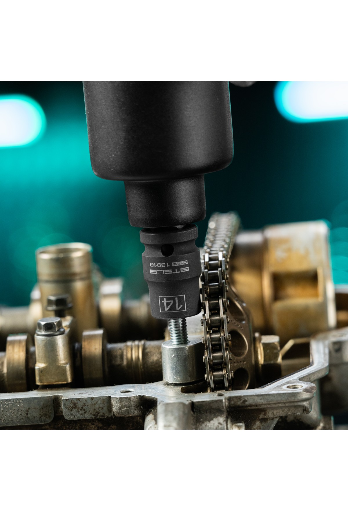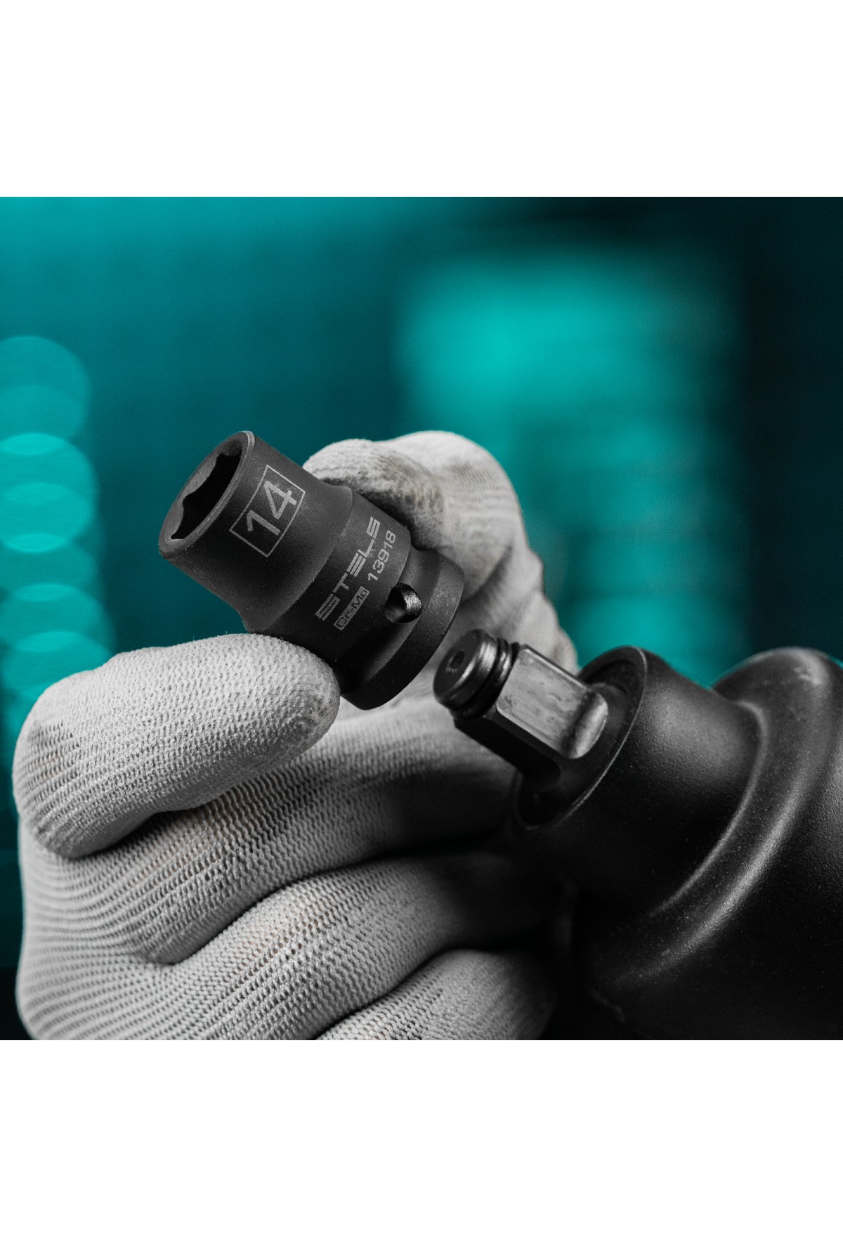 Ударная шестигранная головка Stels 13918 размером 14 мм, из стали CrMo, с присоединительным квадратом 1/2 дюйма, — сменная насадка для электрических и пневматических гайковертов. Она пригодится для монтажа и демонтажа крепежных элементов. Ударная головка выдерживает высокие динамические нагрузки, поэтому подходит для интенсивной эксплуатации на строительной площадке, в автомастерской и слесарном цеху.