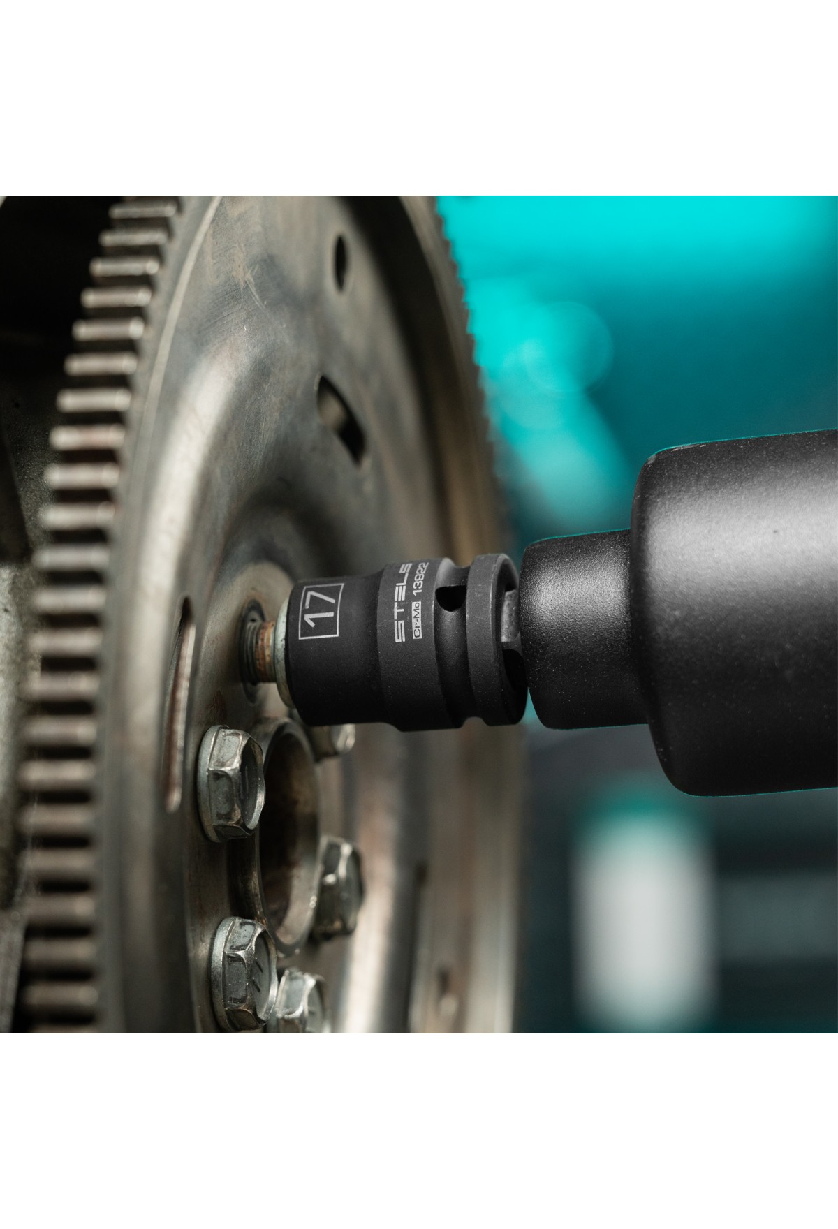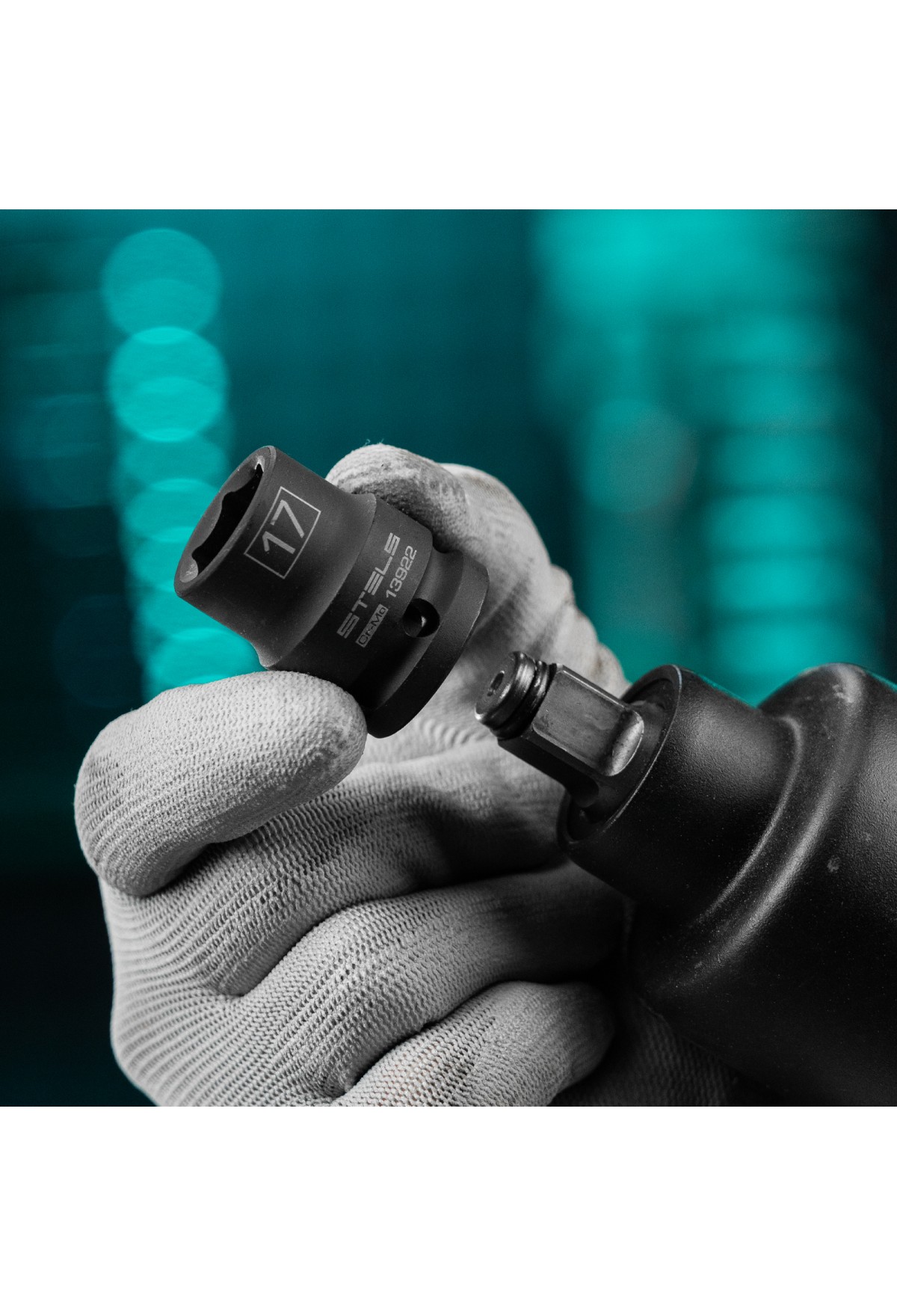 Ударная шестигранная головка Stels 13922 размером 17 мм, из стали CrMo, с присоединительным квадратом 1/2 дюйма, — сменная насадка для электрических и пневматических гайковертов. Она пригодится для монтажа и демонтажа крепежных элементов. Ударная головка выдерживает высокие динамические нагрузки, поэтому подходит для интенсивной эксплуатации на строительной площадке, в автомастерской и слесарном цеху.