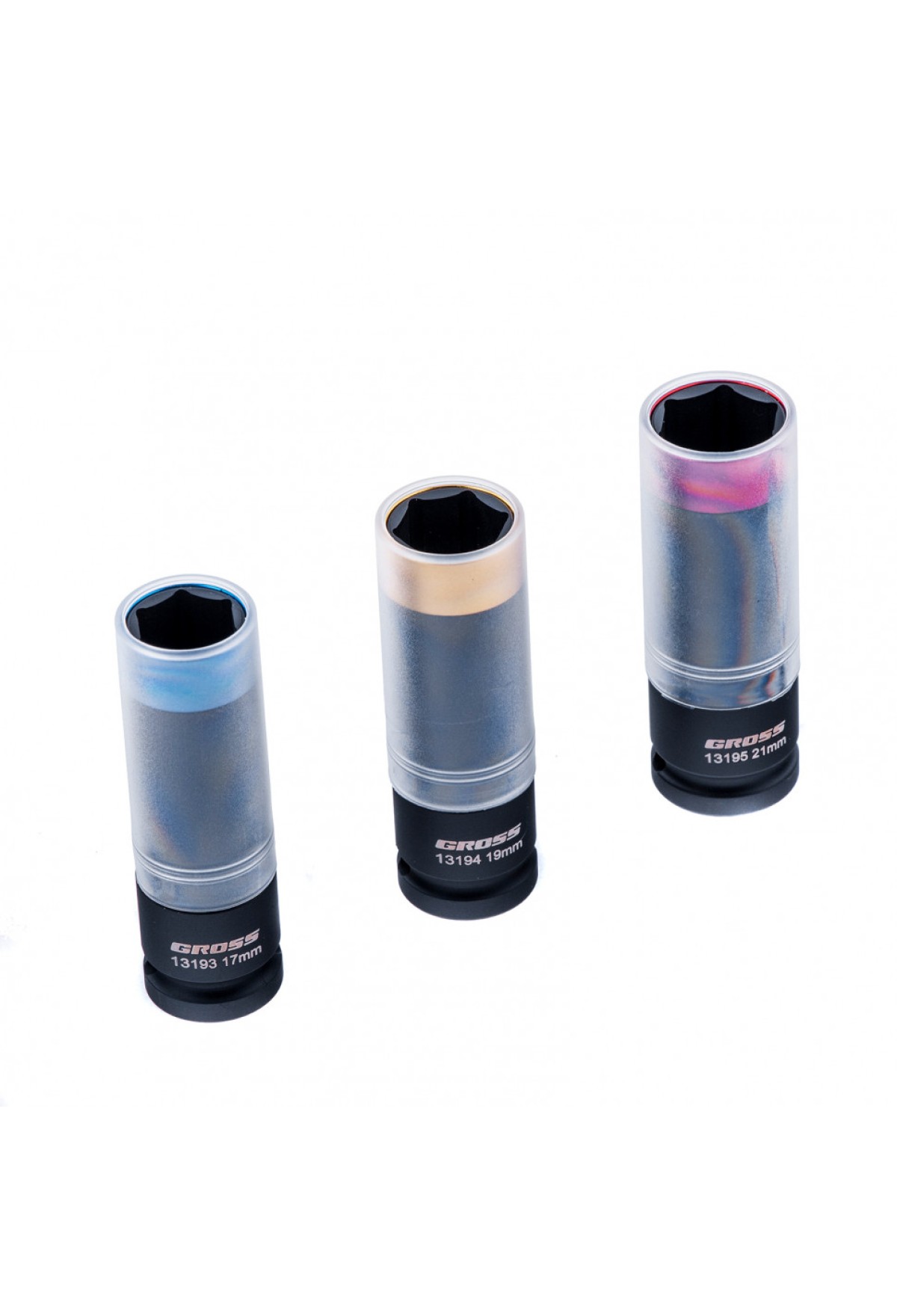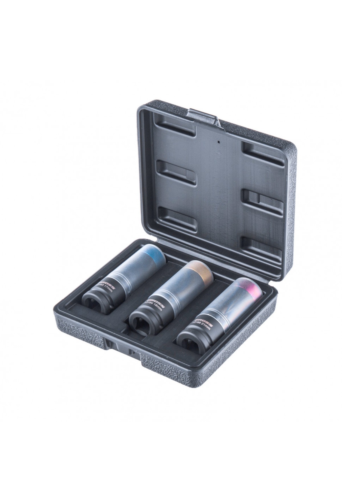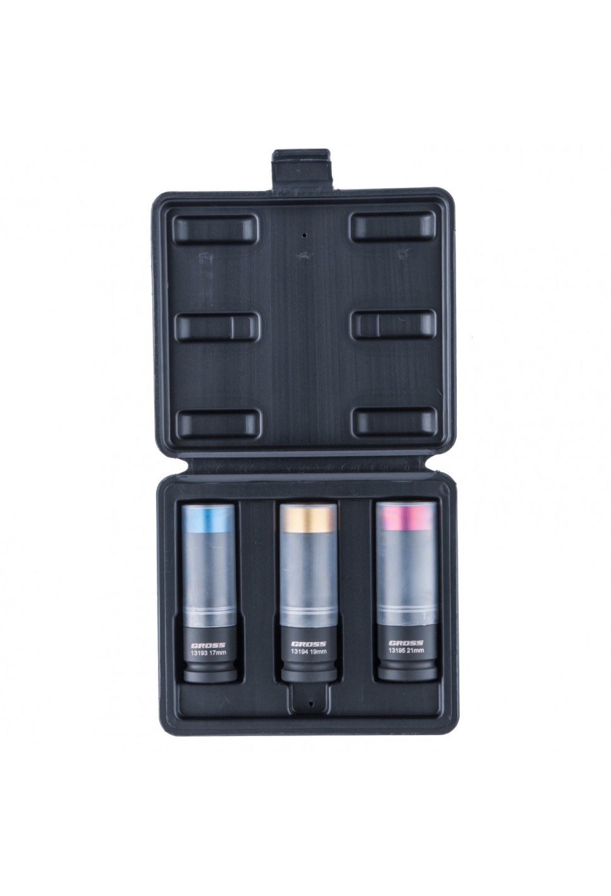 Технические характеристики Набор головок ударных шестигранных для колесных дисков 17, 19, 21 мм, 1/2", 3 предмета Gross