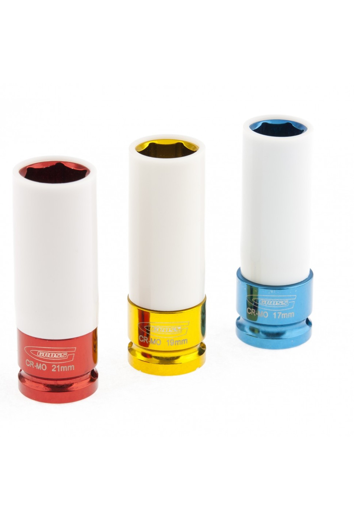 Технические характеристики Набор ударных головок, удлиненные, 1/2, шестигранные, CrMo, 3 шт, 17 мм, 19мм, 21мм Gross