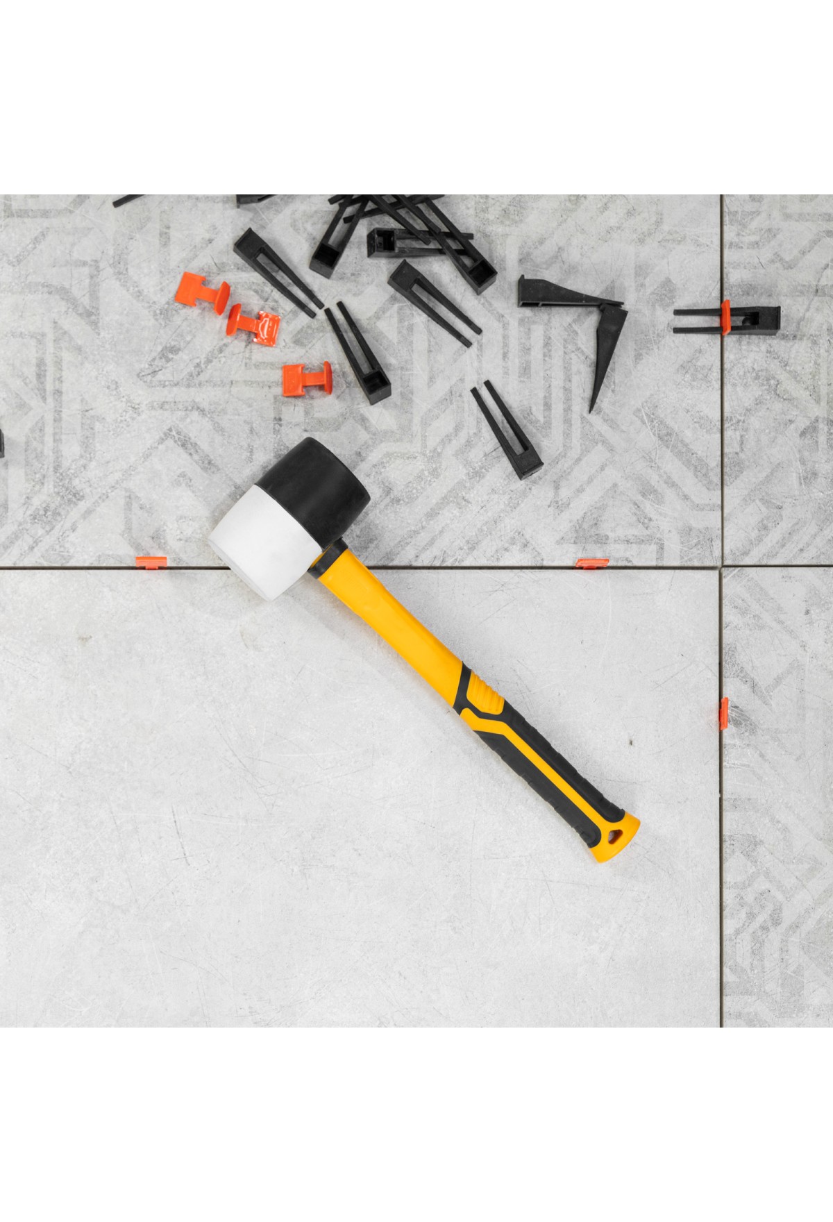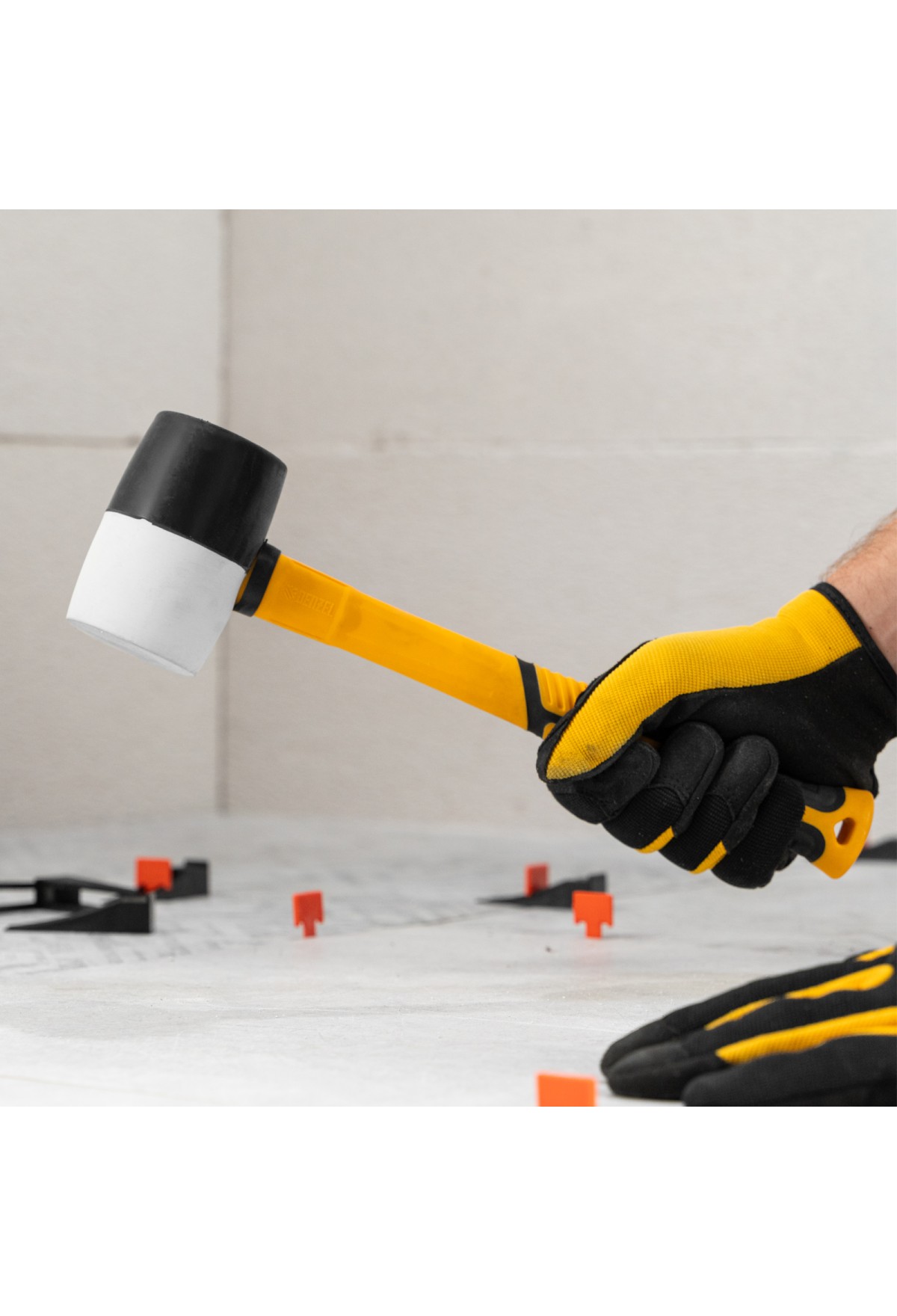 - Безопасная работа со светлыми материалами — часть бойка из белой резины не оставляет следов.