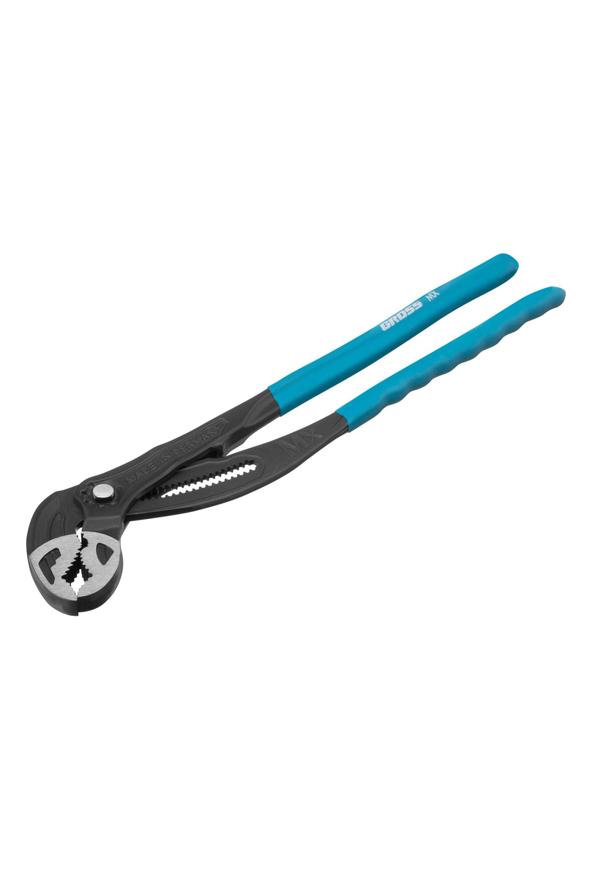 Переставные клещи Gross 15729 длиной 400 мм, с кнопочным механизмом и обливными рукоятками, — профессиональный инструмент для работ с сантехникой, фитингами, трубами и т.д. Рабочие губки с насечками обеспечивают надежный захват изделий диаметром до 95 мм. Клещи удобны для работы в труднодоступных местах.