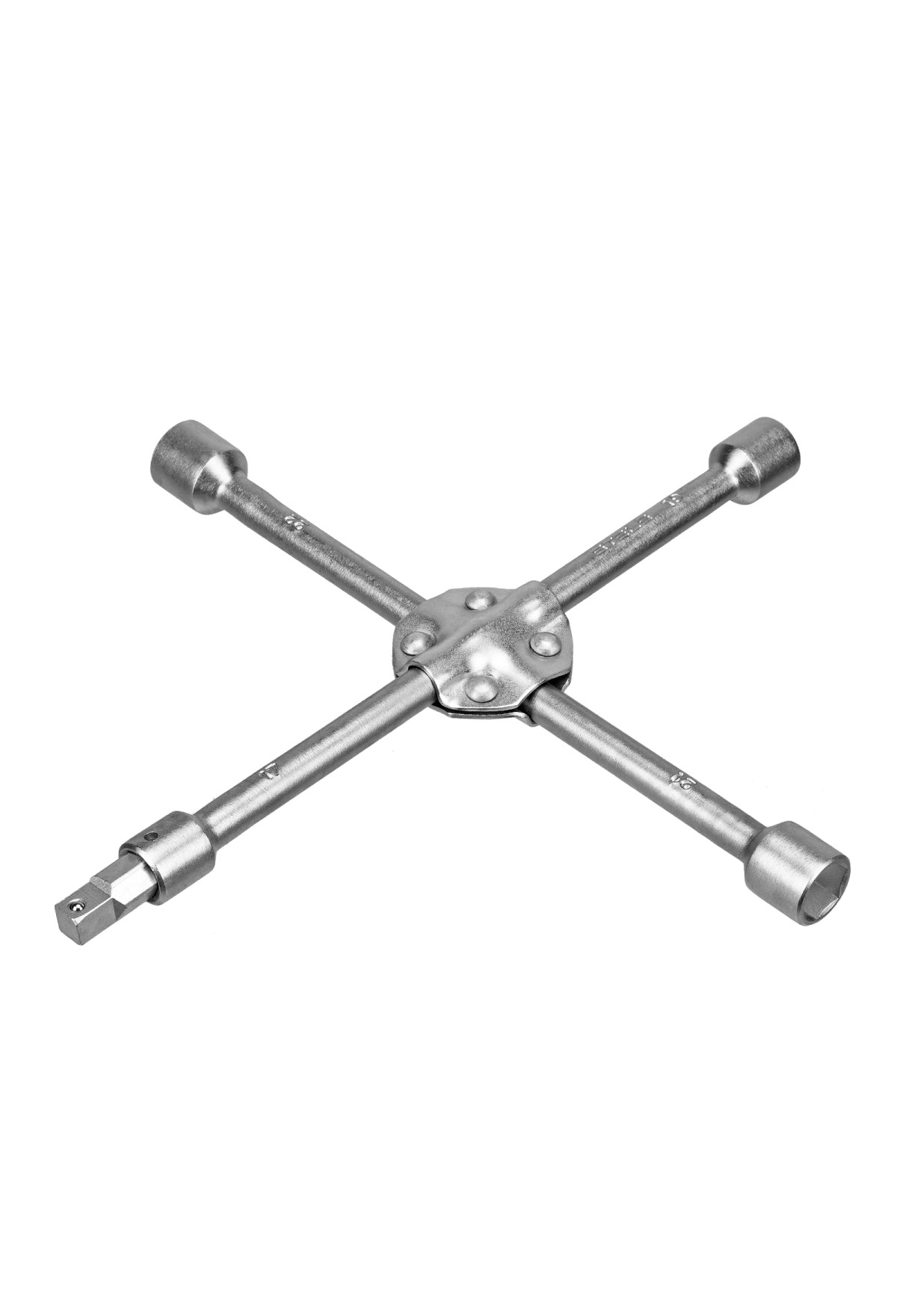 Усиленный баллонный ключ-крест Stels 14249 с переходником на 1/2", под крепеж 17 х 19 х 21 х 22 мм, с толщиной прутьев 16 мм, предназначен для демонтажа и установки автомобильных колес. Несъемные шестигранные торцевые головки подходят для колесных гаек и болтов самых распространенных размеров. Ключ предназначен для использования в автоцентрах, для самостоятельного обслуживания автомобиля, пригодится также в поездке.