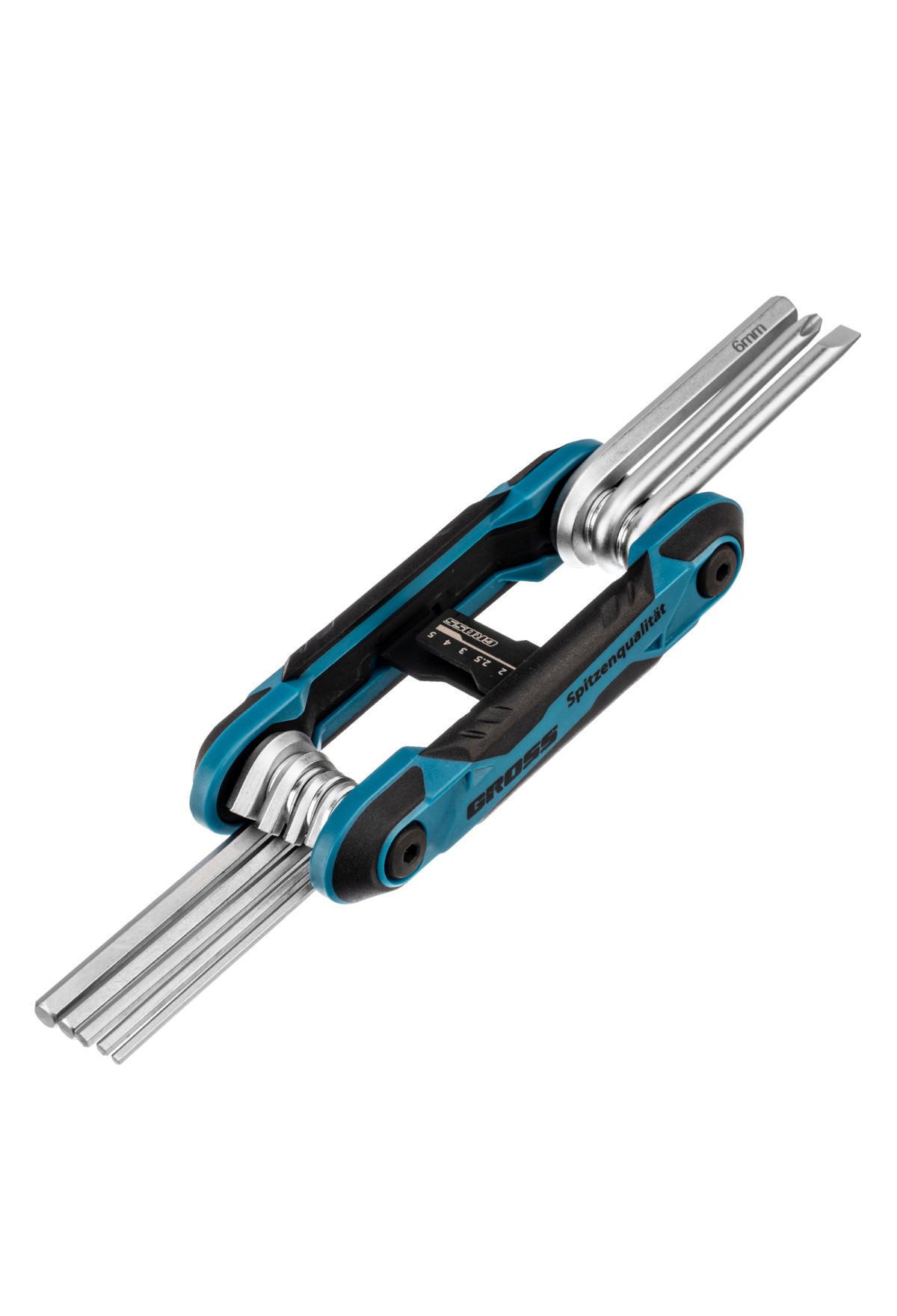 Универсальный набор складных имбусовых ключей Gross 16414 из стали CrV включает 8 предметов и применяется для демонтажа и монтажа крепежей со шлицами HEX, PH и SL. В набор входят ключи самых распространенных размеров, что позволяет решить большинство задач. С его помощью можно собрать мебель, отремонтировать спортинвентарь, бытовую технику. Набор подходит для профессионального и домашнего использования.