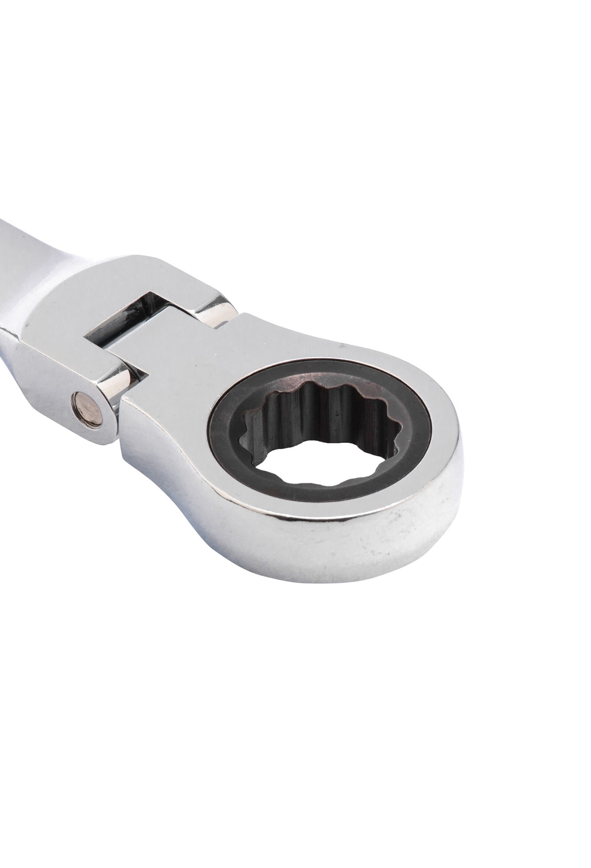 - Удобная работа в труднодоступных местах — храповой механизм на 72 зуба обеспечивает плавное вращение (шаг трещотки составляет 5°), а шарнир позволяет поворачивать рабочую часть под углом.