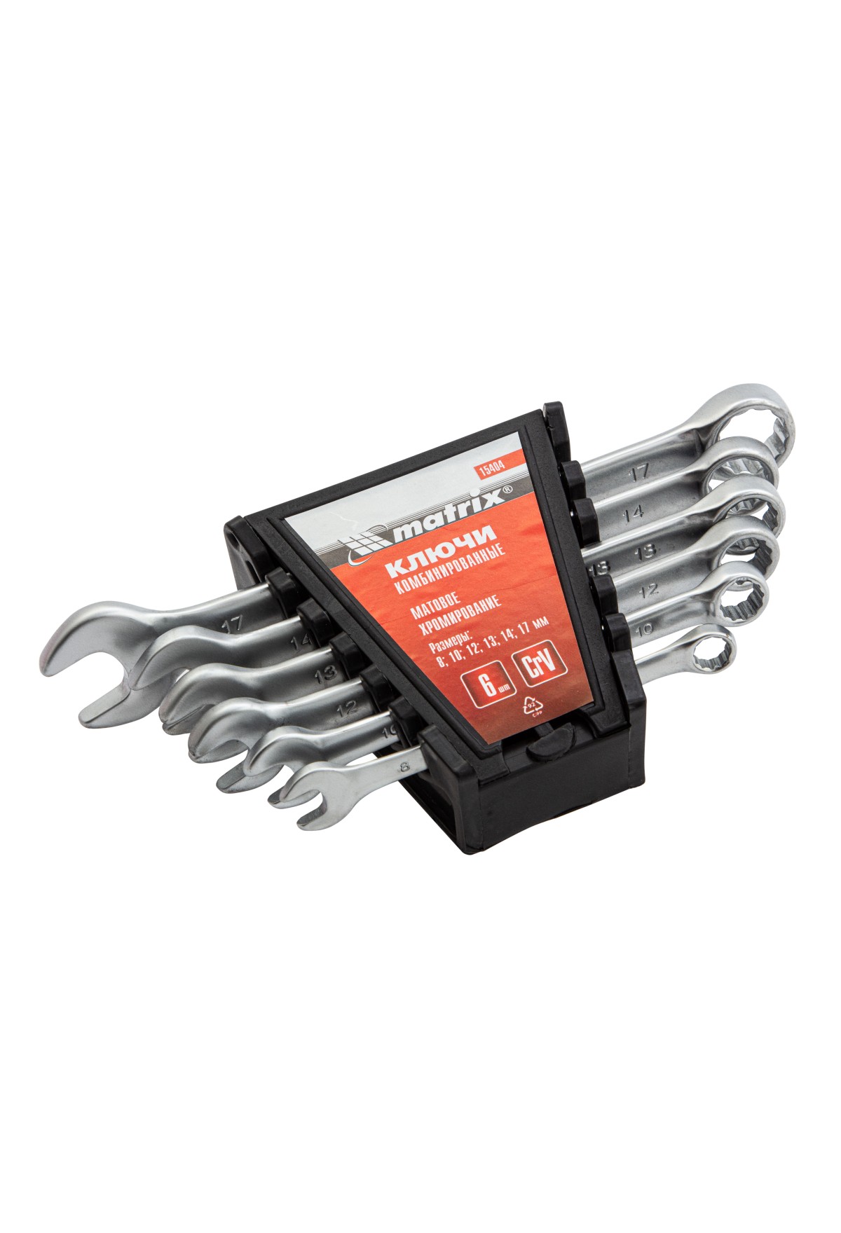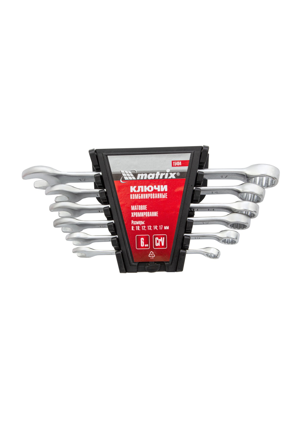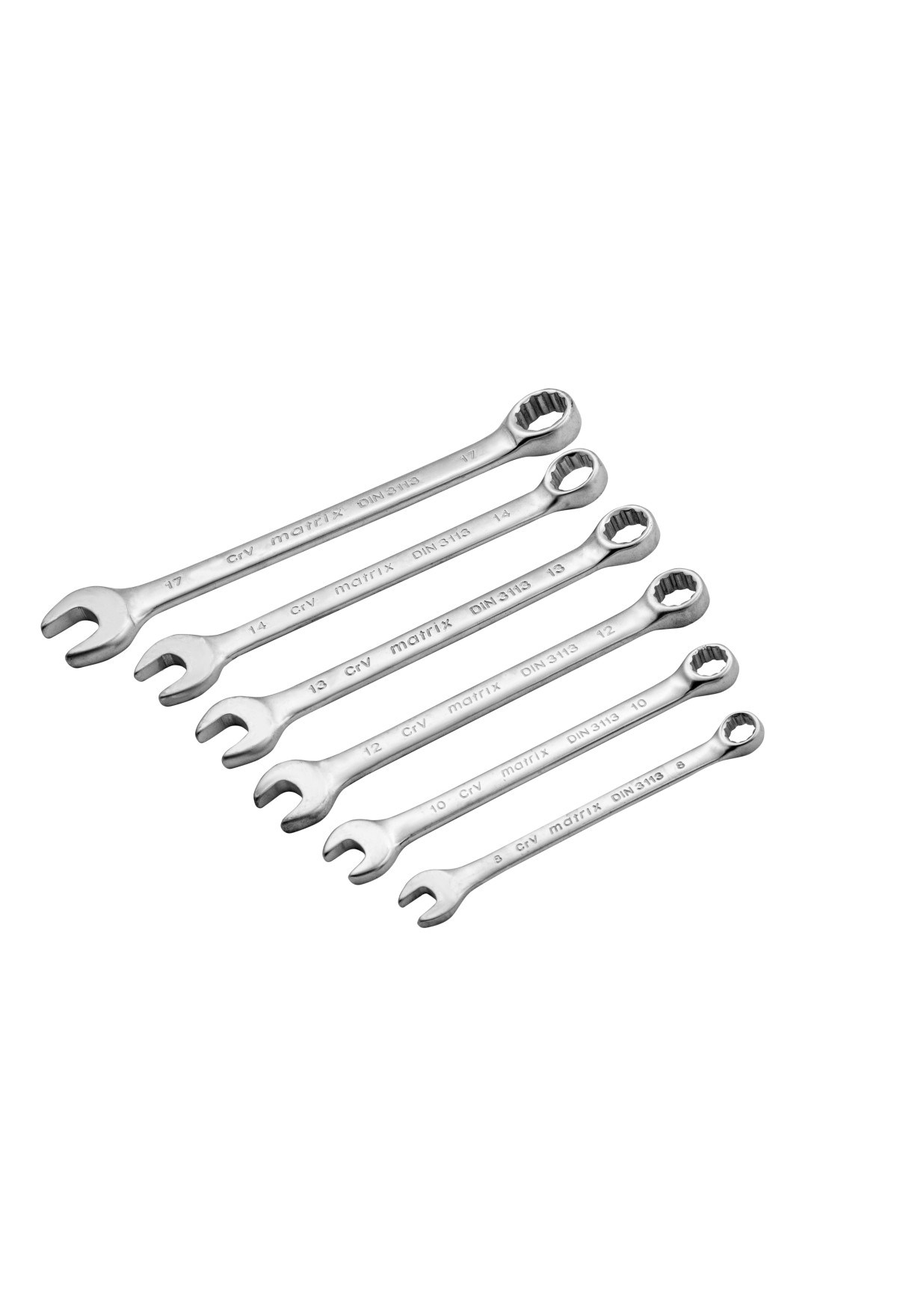 Набор ключей комбинированных, 8-17 мм, 6 шт, CrV, матовый хром Matrix
