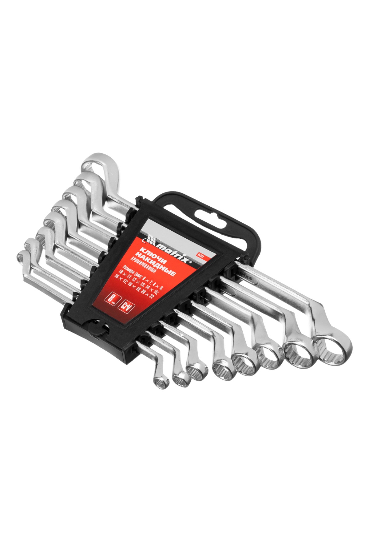 Набор из 8 накидных ключей Matrix 15332 из стали CR-V, с покрытием из полированного хрома, предназначен для монтажа и демонтажа крепежных элементов размером 6-22 мм. Накидные рабочие части с круглым профилем полностью охватывают головку крепежа и легко справляются даже с закисшими болтами и гайками. Благодаря изогнутой форме ключи удобны для работы в труднодоступных местах. Инструменты подходят для эксплуатации в бытовых условиях, автосервисе и частной мастерской.