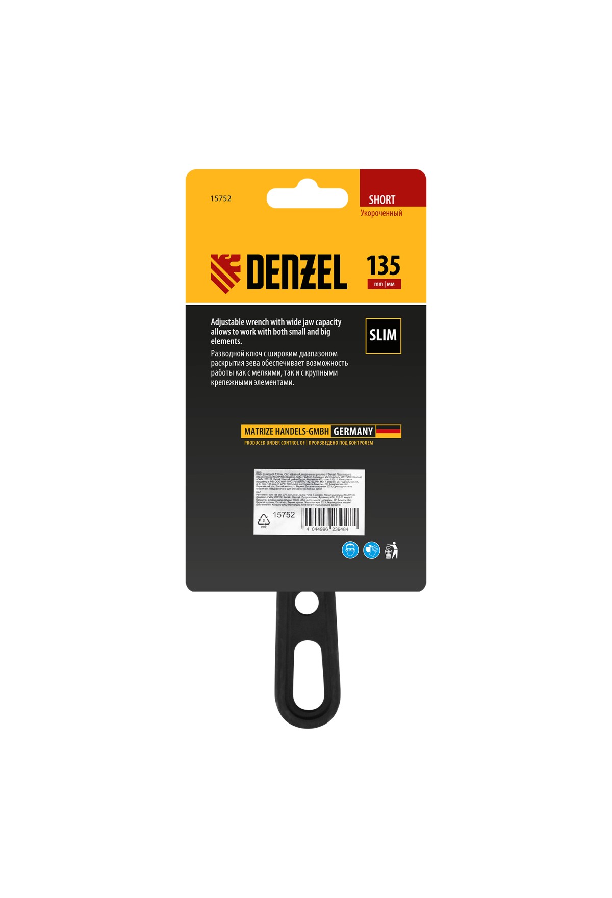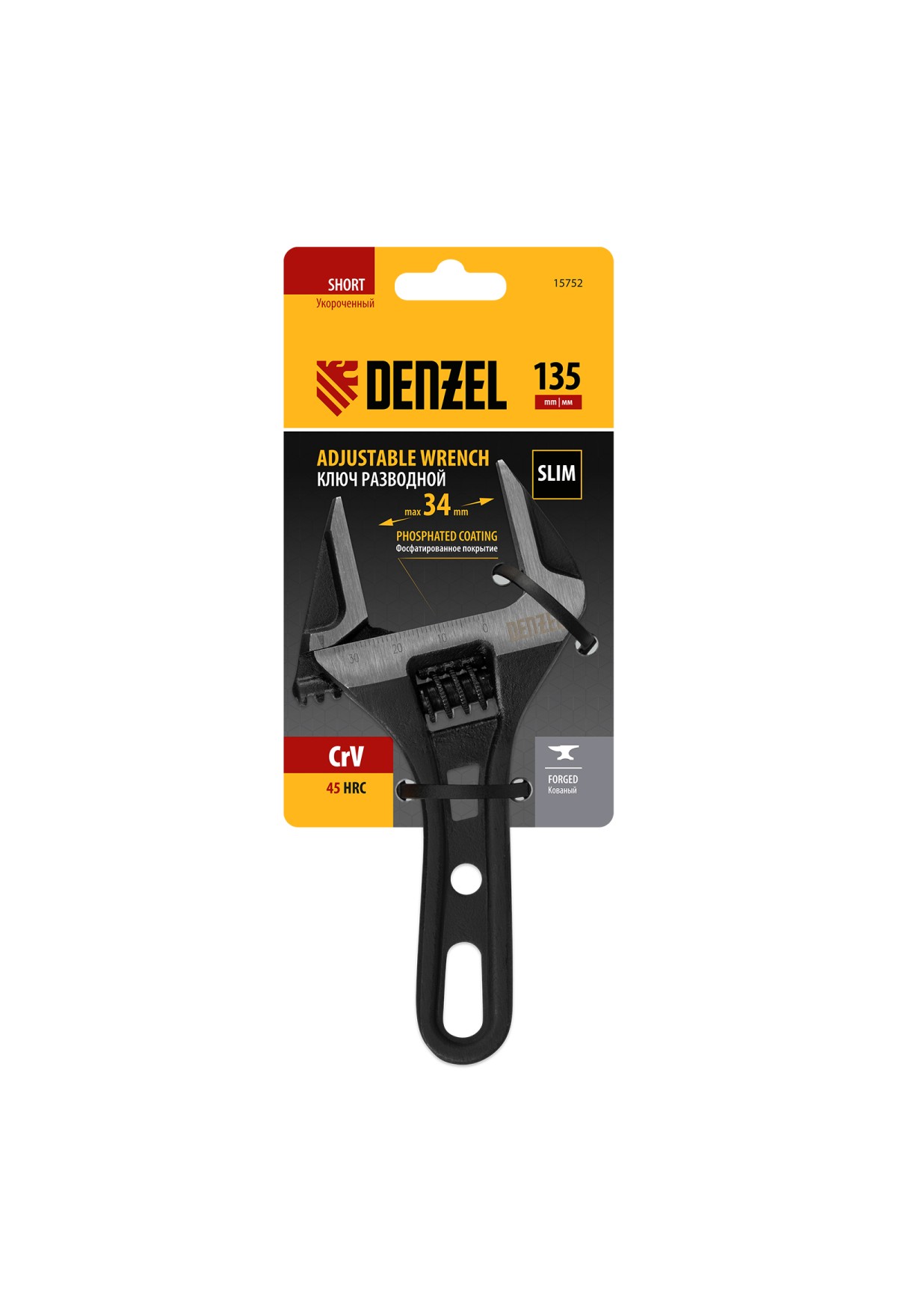 • Ключ разводной 135 мм, CrV, кованый, укороченная рукоятка Denzel