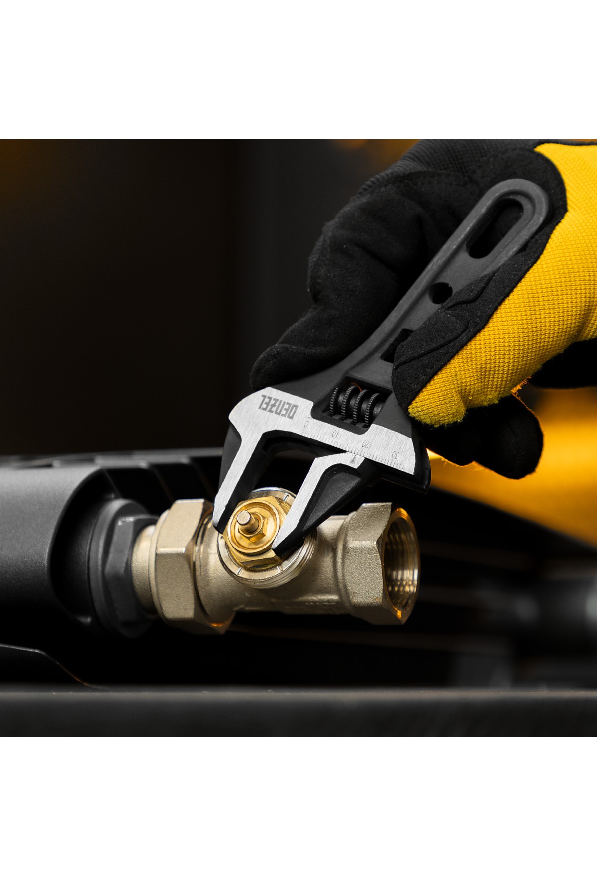 Ключ разводной кованый Denzel 15752 длиной 135 мм, из стали CrV, с укороченной рукояткой и увеличенным раскрытием губок, используется для монтажа и демонтажа крепежных элементов диаметром до 34 мм. Благодаря тонким губкам и укороченной рукоятке удобен для работы в труднодоступных местах. Имеет широкую область применения: сантехнические работы, мелкий бытовой ремонт, полупрофессиональная сфера и т. д.
