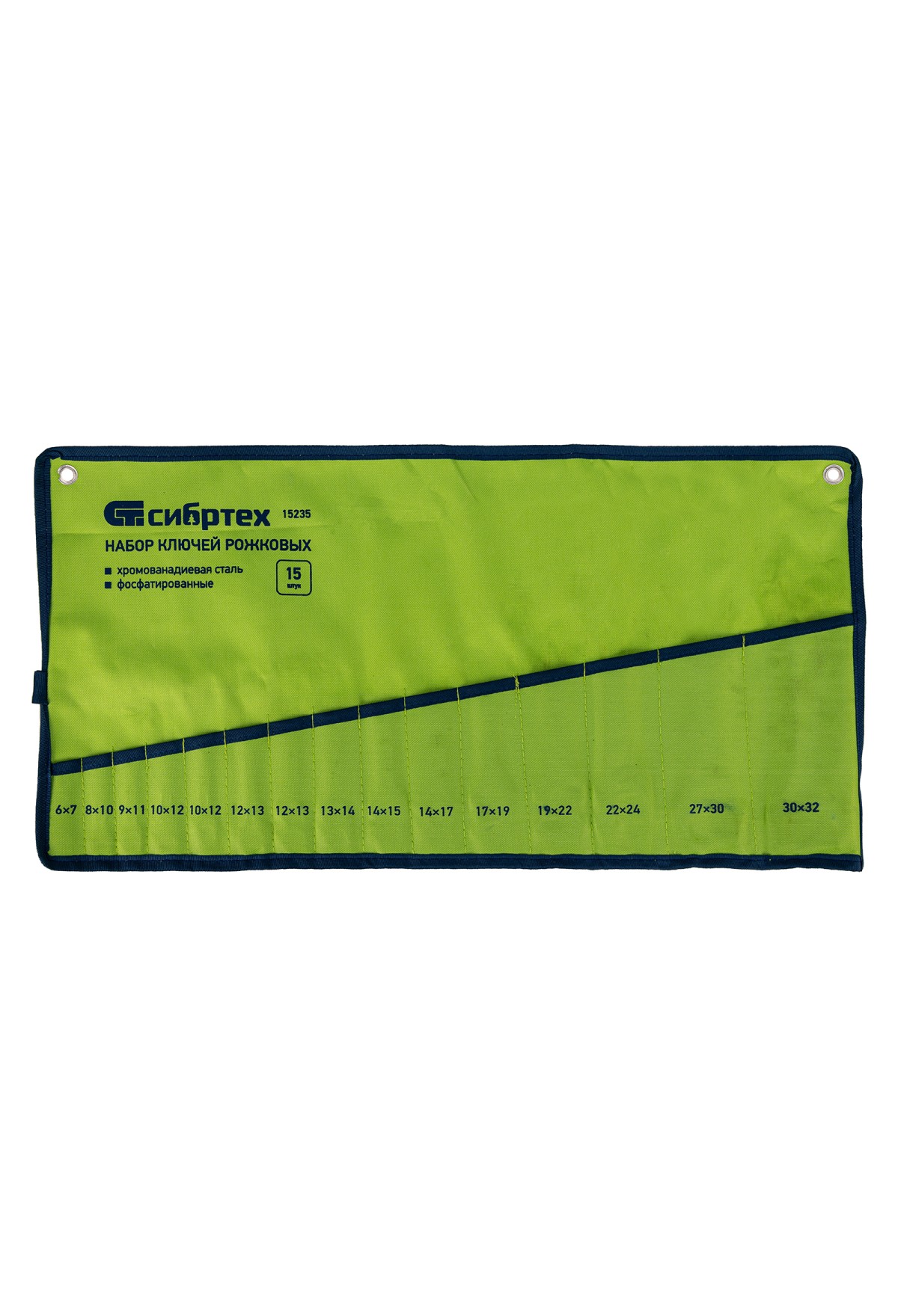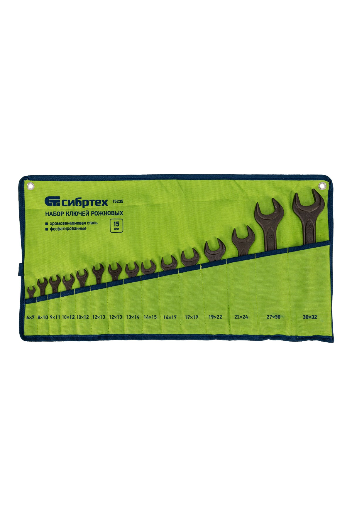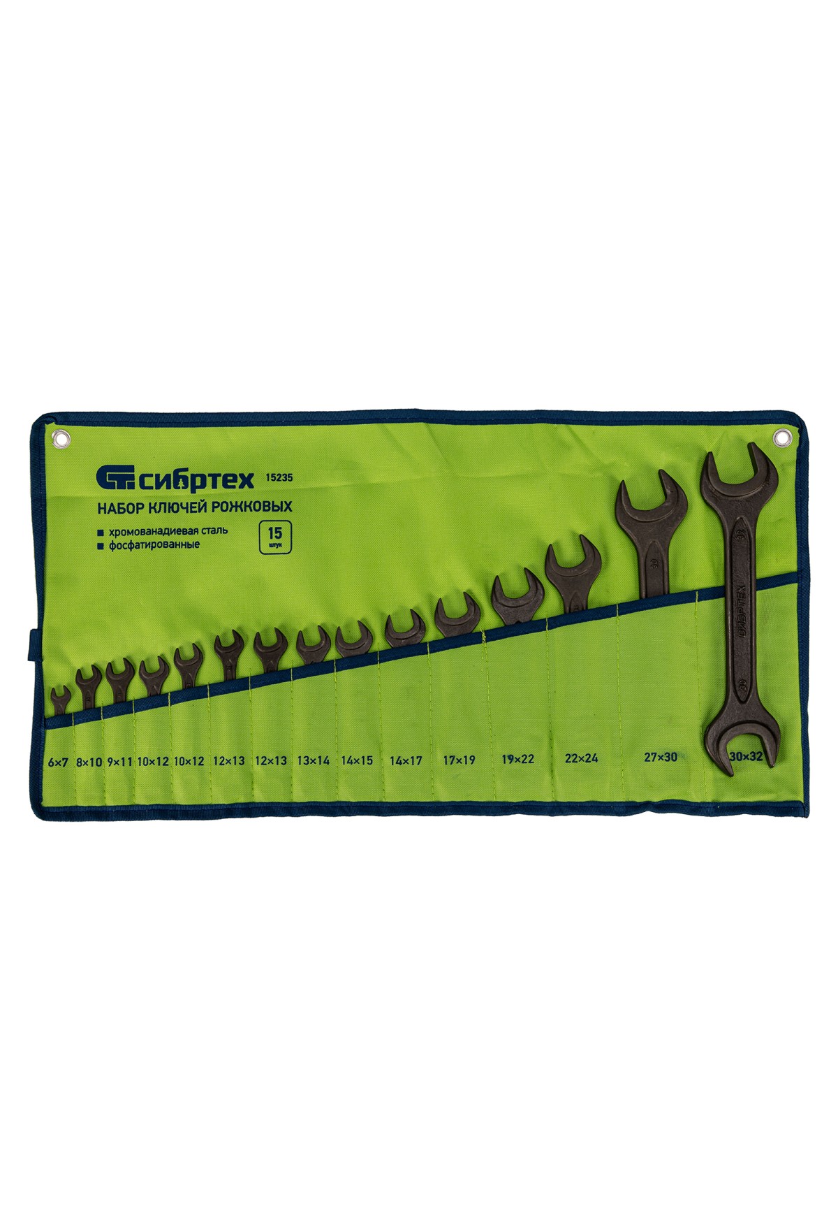 • Набор ключей рожковых, 6 - 32 мм, 15 шт., CrV, фосфатированные Сибртех