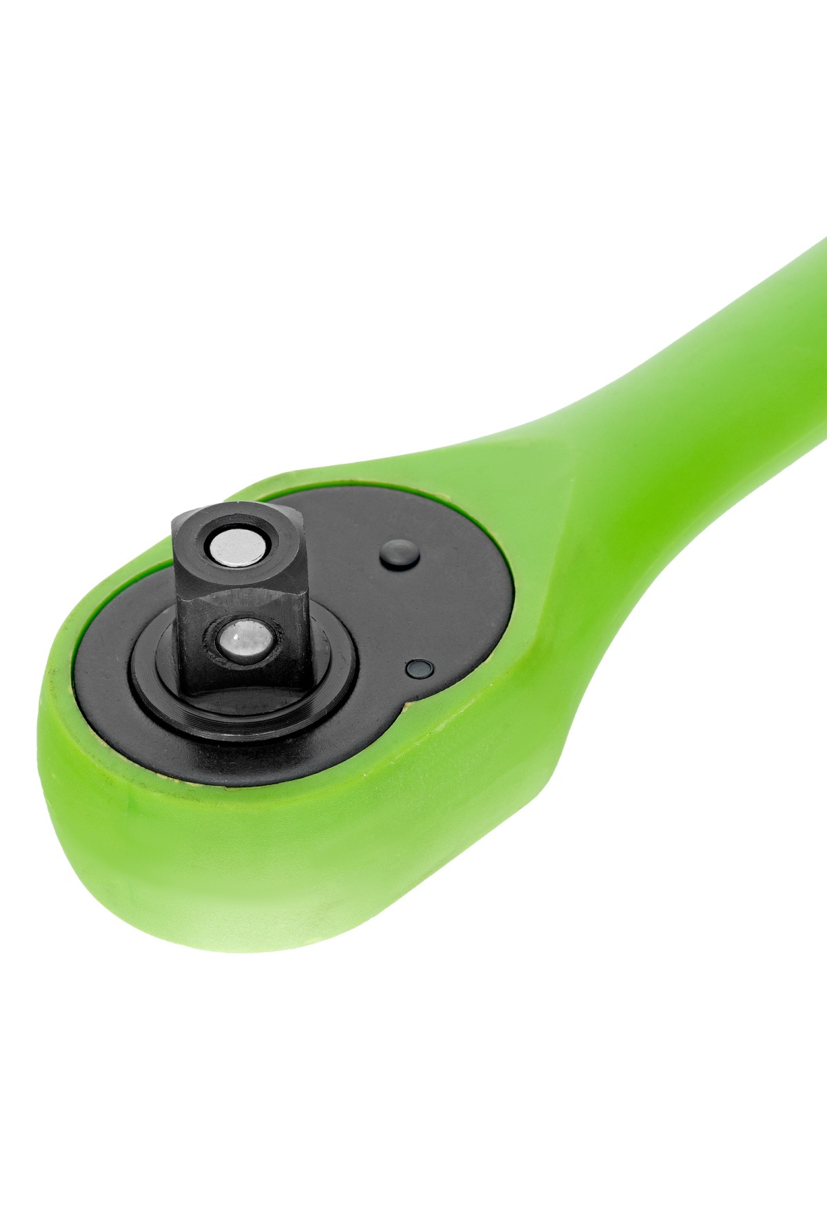 • Надежная фиксация оснастки — металлический шарик-держатель не допускает выпадение торцевых головок, адаптеров и удлинителей.