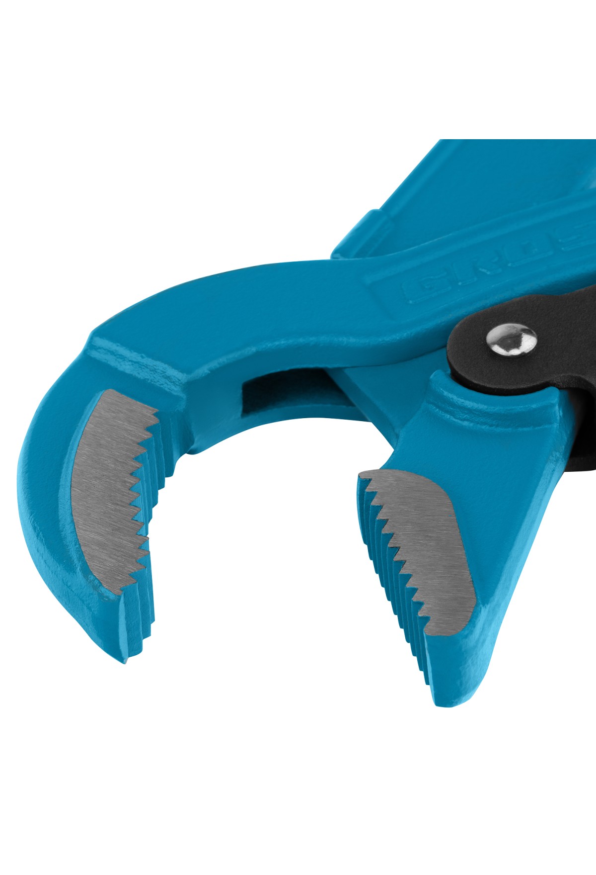 - Высокая прочность — цельнокованый корпус изготовлен из хромованадиевой стали, а губки закалены до твердости 57-60 HRC.