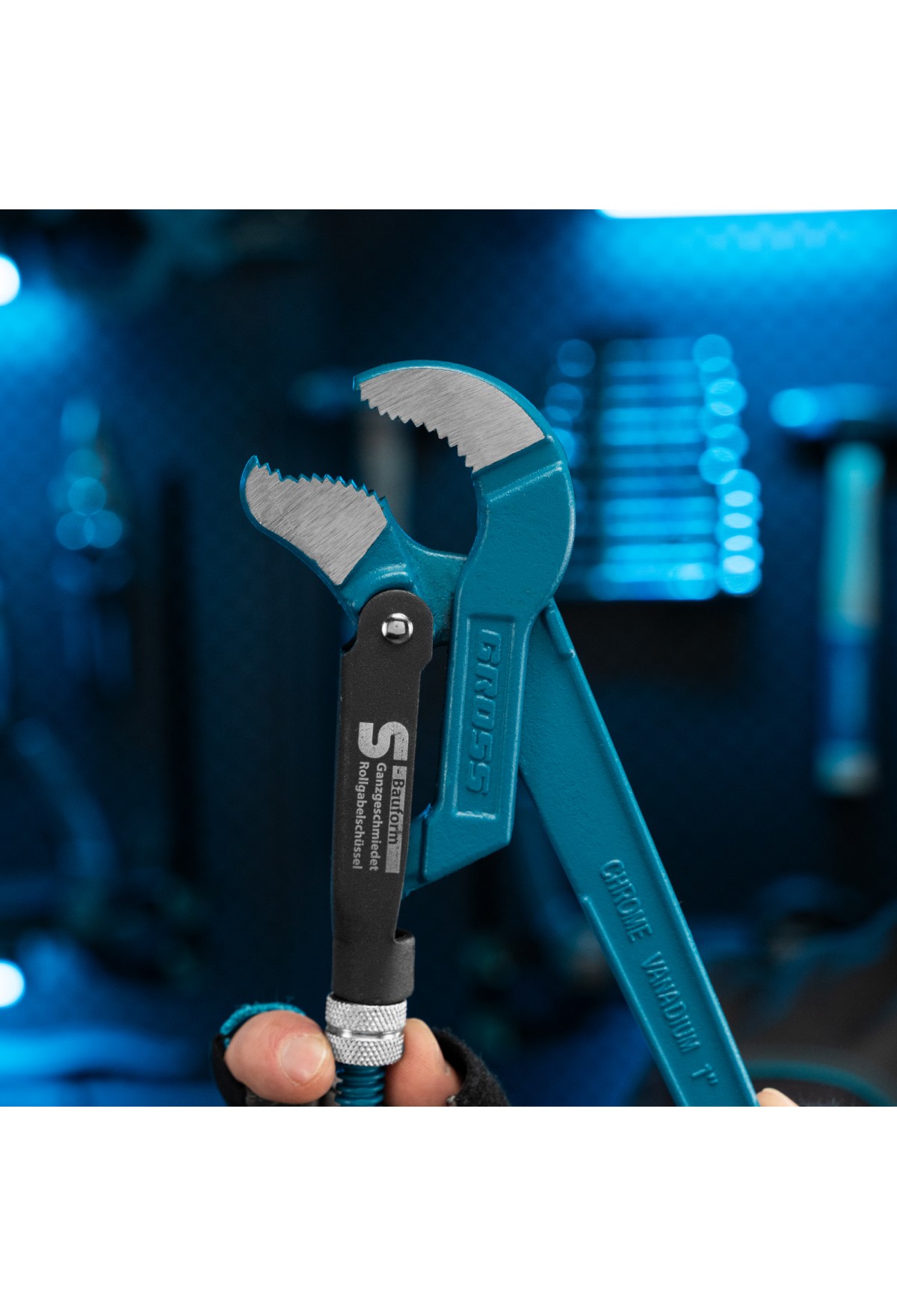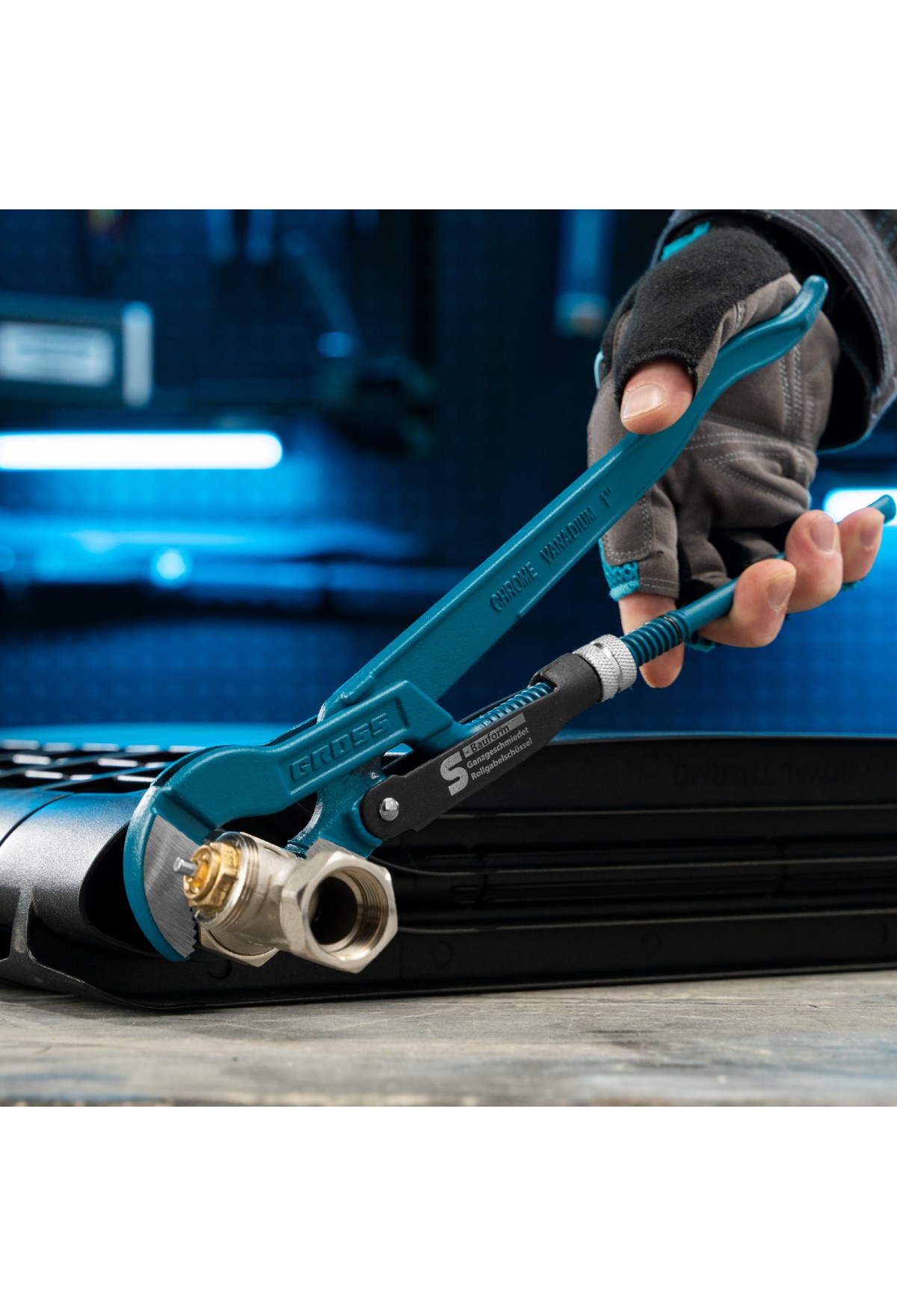 Цельнокованый трубный рычажный ключ Gross №1 15611 из стали CrV, тип «S», предназначен для захвата и вращения труб и соединительных деталей диаметром 1″. Ключ S-образной формы крепко захватывает плоские и объемные предметы, а также позволяет работать в труднодоступных местах. Рычажный механизм увеличивает прикладываемое усилие, что снижает усталость мастера. Инструмент выдерживает интенсивное использование, поэтому пригодится сотрудникам автосервиса, коммунальных служб, а также будет полезен в быту.