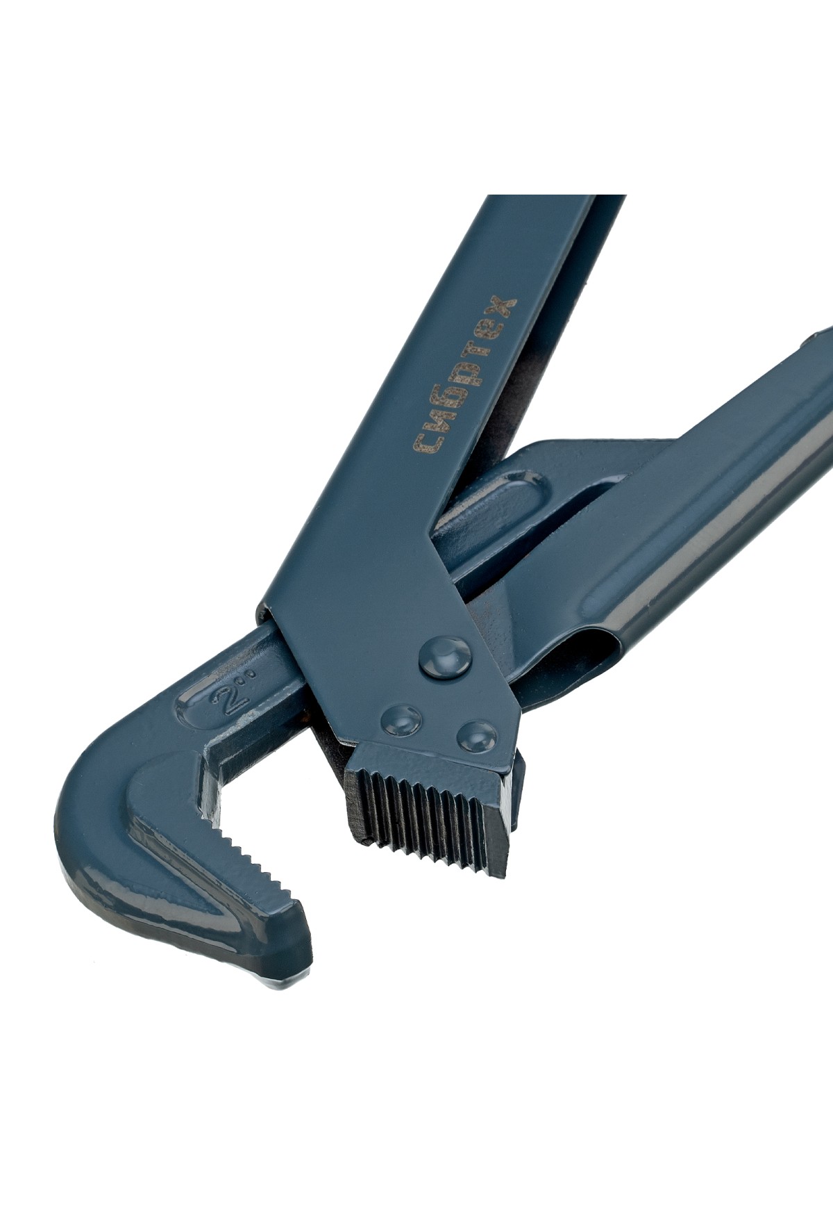 - Прочность и долговечность — кованая конструкция из закаленной легированной стали обеспечивает высокий рабочий ресурс, губки закалены до твердости 48-52 HRC.